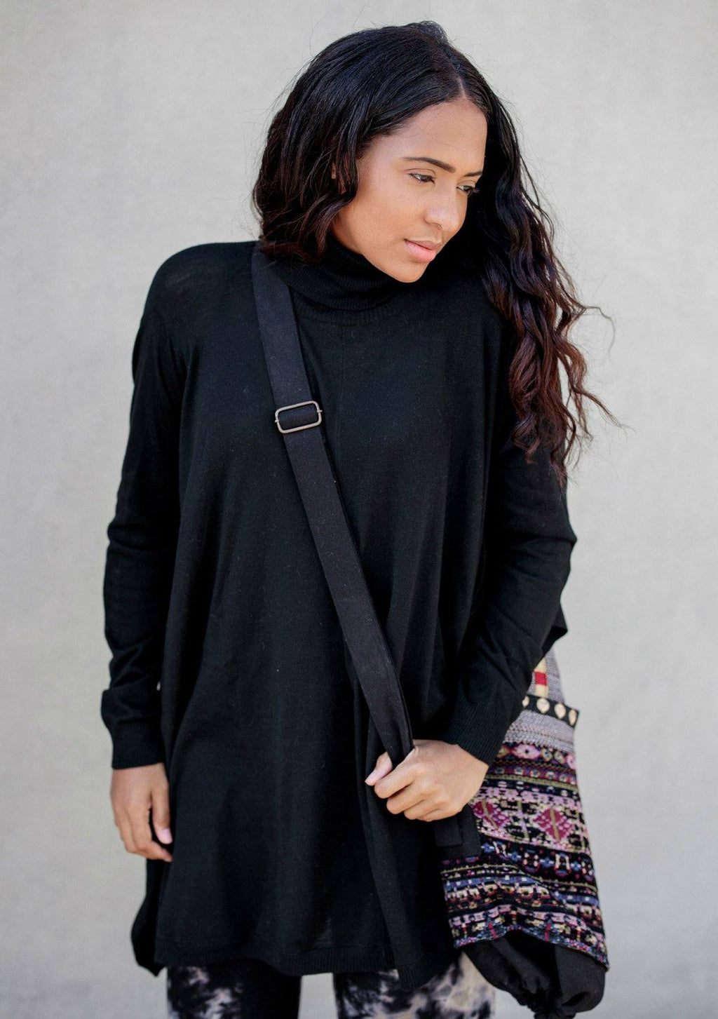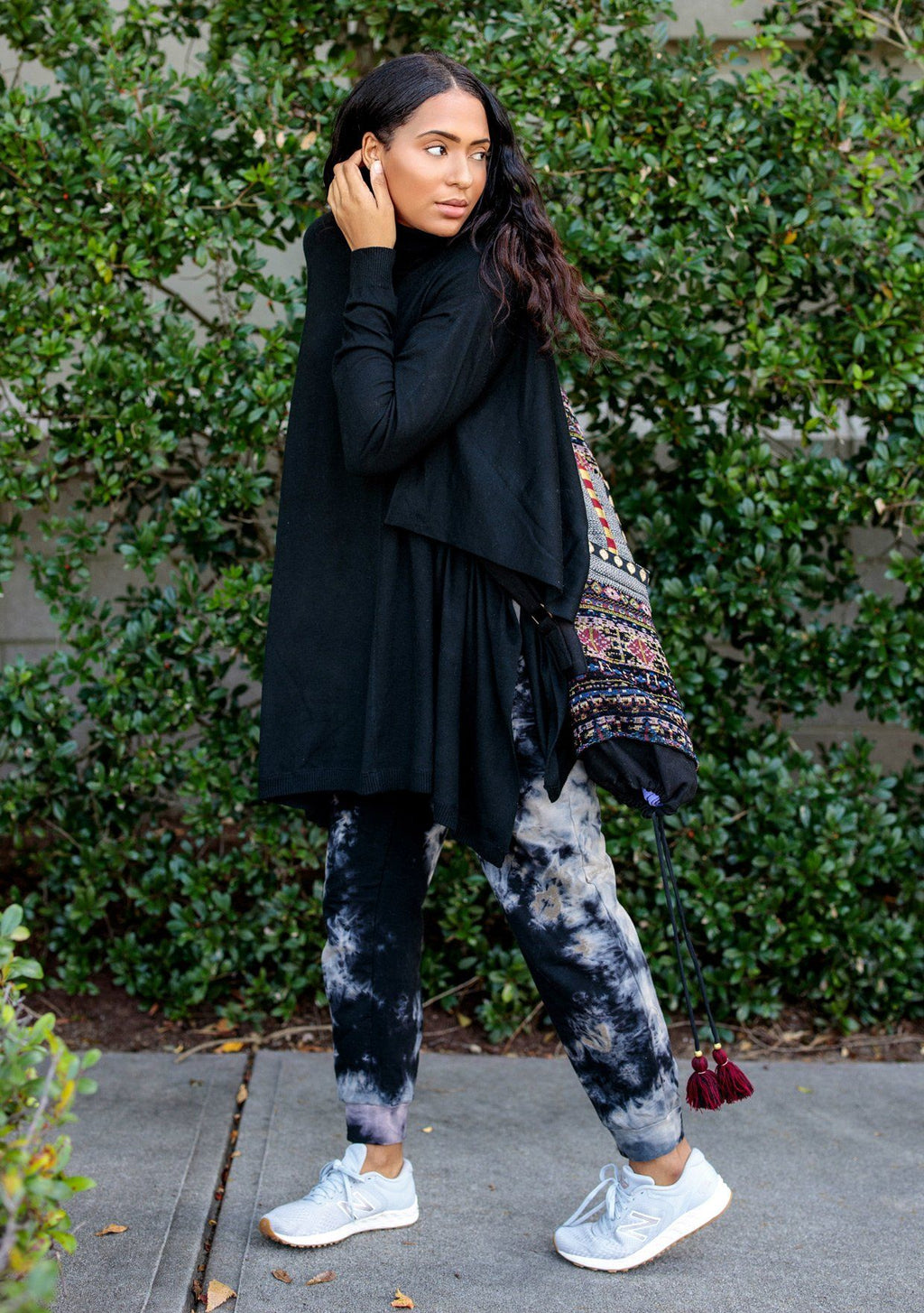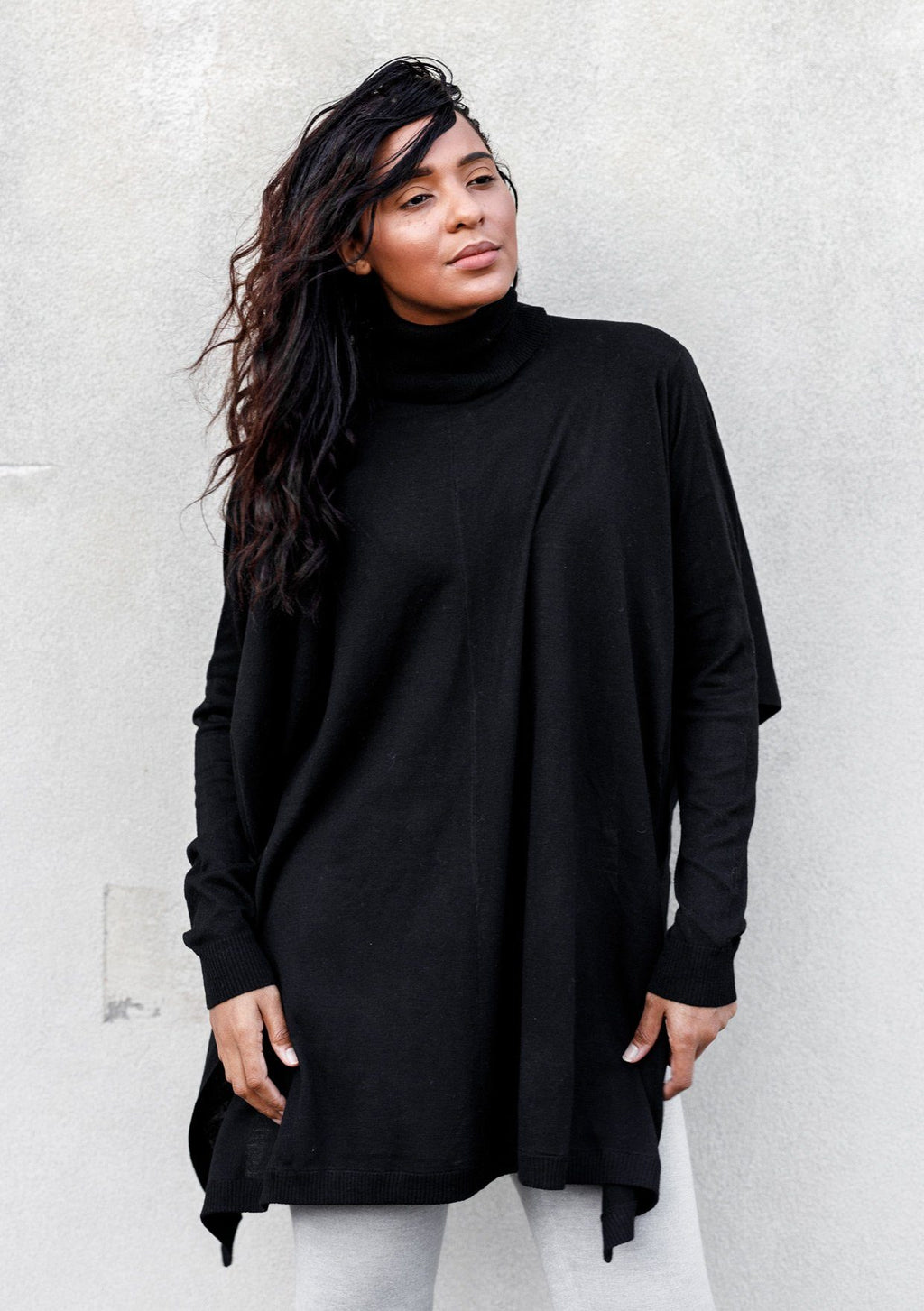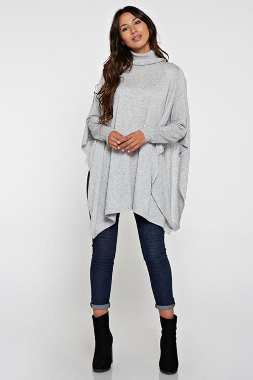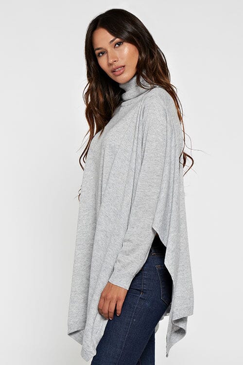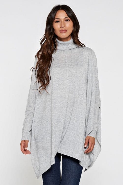 Keeping warm never looked so cool! Our turtleneck sweater poncho features a flattering drapey silhouette, breezy side vents, and a slightly longer tunic style length. A lightweight style that will keep you warm and looking effortlessly chic after a yoga class.