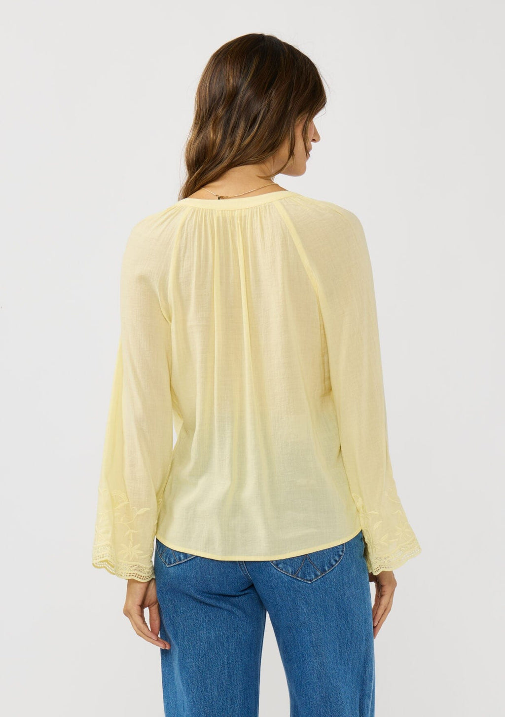 ![[Color: Yellow] A back facing image of a brunette model wearing a yellow blouse with tonal embroidery, long bell sleeves, and split v-neckline. A lightweight and sheer top for the spring season.](http://www.shoplovestitch.com/cdn/shop/files/Lovestitch_10222015_863_160x.jpg?v=1762896754)