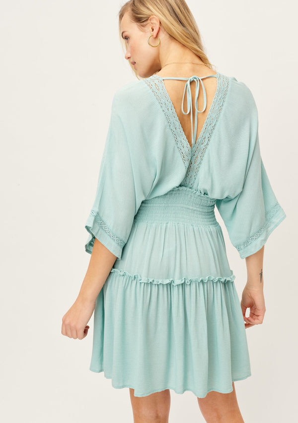 ![[Color: Sorbet] A woman standing in a field outside wearing a bohemian chic mini dress with long billowy volume sleeves, a beautiful open back with tassel tie details, and made with a soft swiss dot fabrication.](http://www.shoplovestitch.com/cdn/shop/products/I-71915WL-QXX_Sorbet-7_{width}x.jpg?v=1651271221)