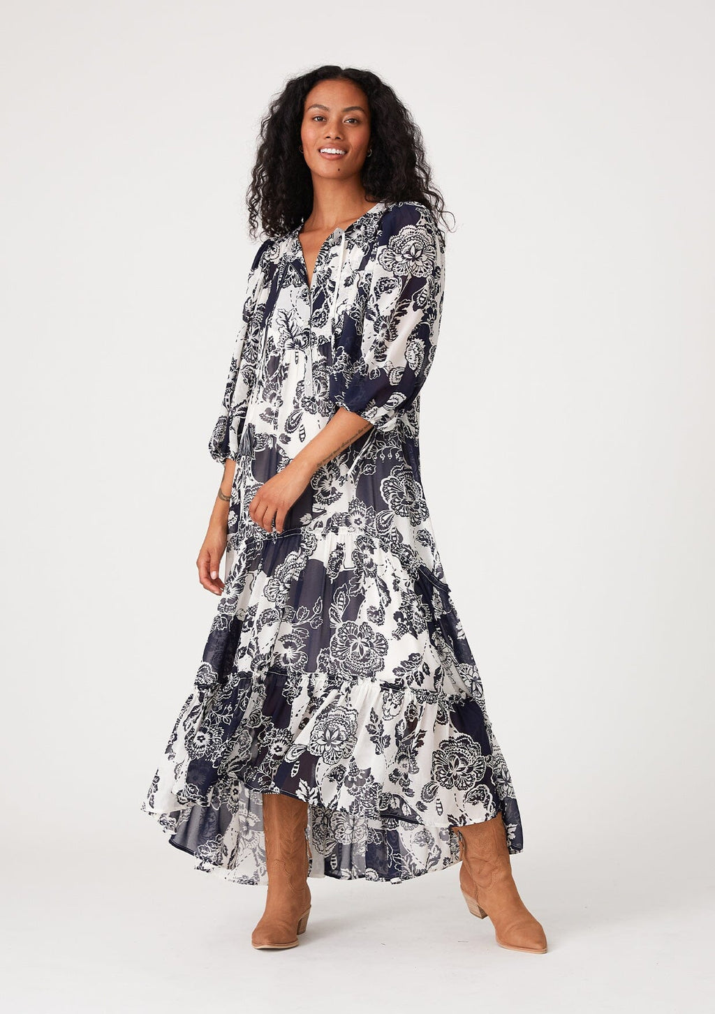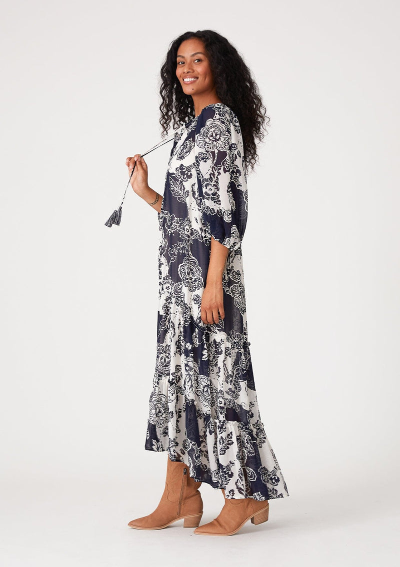 A best-selling silhouette crafted from ethereal chiffon. Our ultra-relaxed bohemian maxi dress is designed in a stunning floral print and features flattering 3/4 length puff sleeves and a loose, flowy ruffle-trimmed skirt.