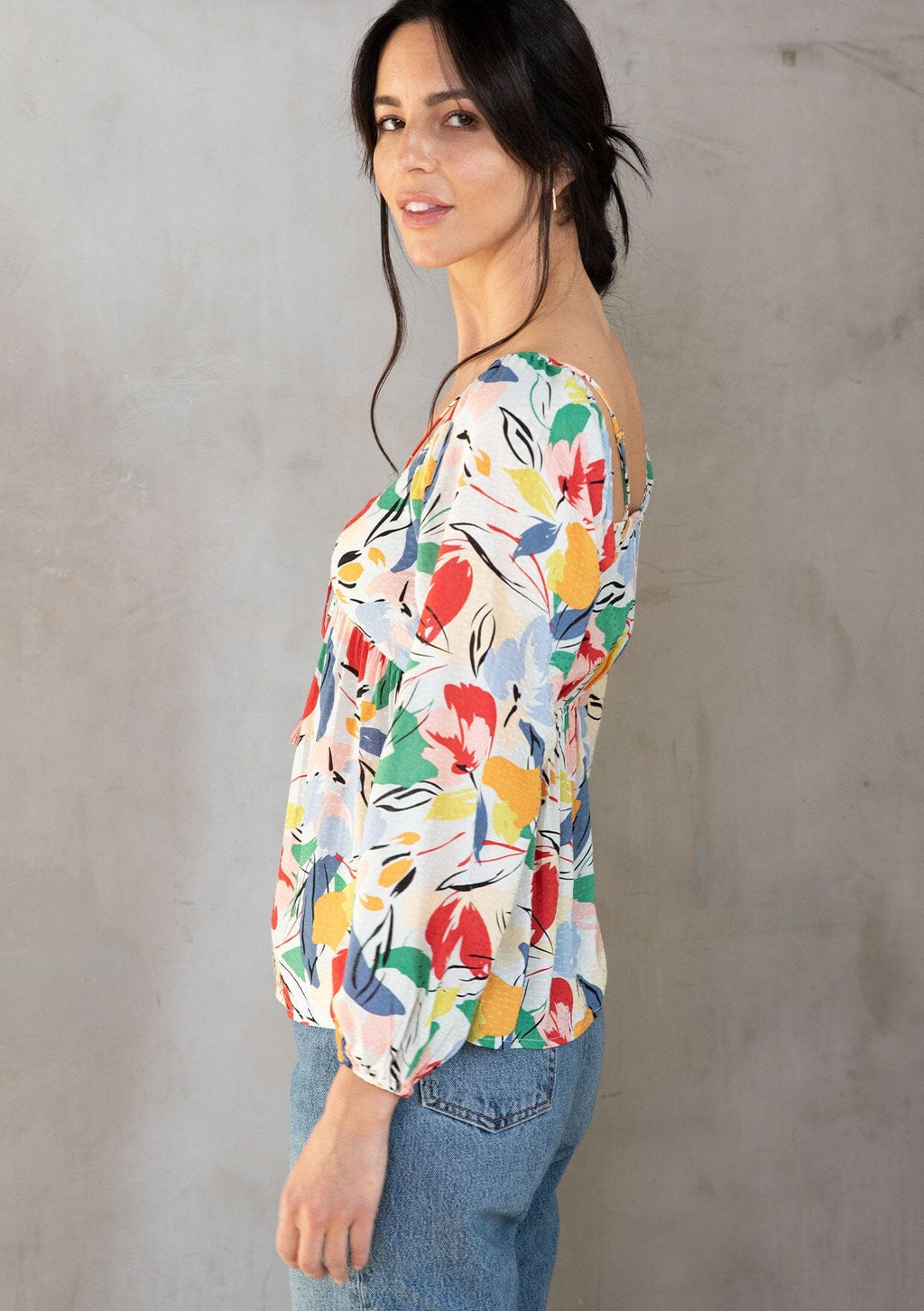 Shop NowA colorful start to Spring! This soft bohemian blouse is designed in an artistic watercolor floral print. Features voluminous long sleeves and a flirty sweetheart neckline with strappy detail. The flowy peplum waist both conceals and flatters.