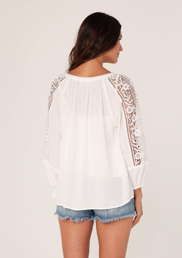 ![[Color: Black] A side facing image of a blonde model wearing a black lightweight cotton-blend top with a tie front detail, button front, and 3/4 length sleeves with embroidered and cutout details.](http://www.shoplovestitch.com/cdn/shop/files/Lovestitch_061225_664_{width}x.jpg?v=1750490937)