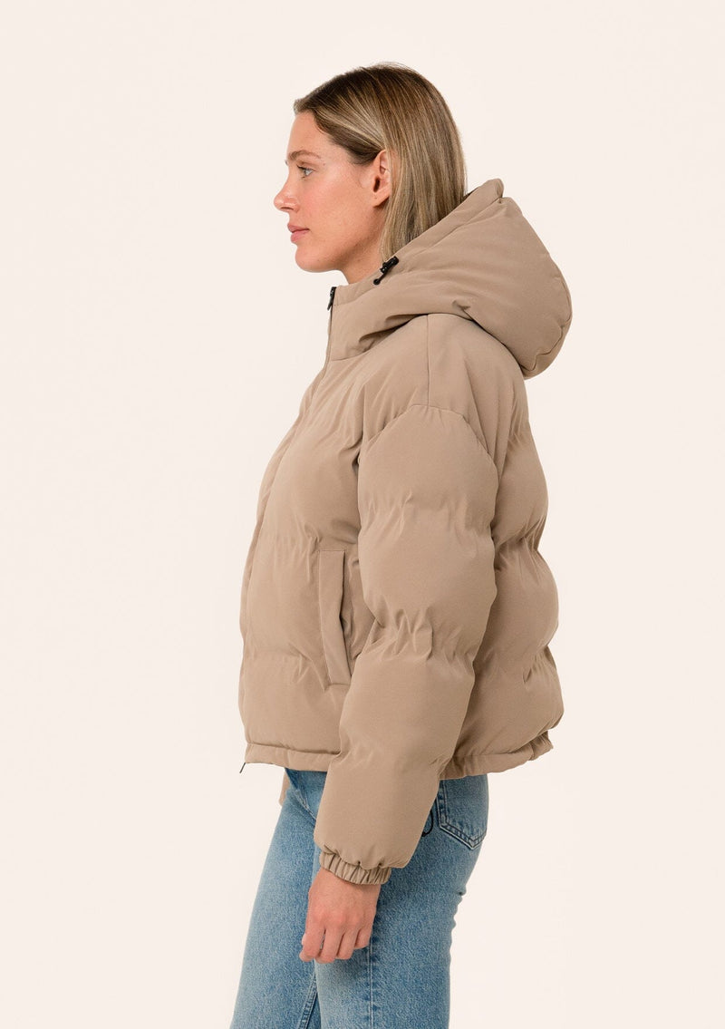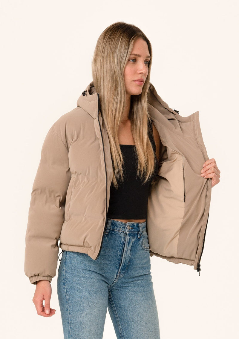 ![[Color: Taupe] A side facing image of a blonde model wearing an ultra puffy cropped jacket in a matte taupe brown finish. Featuring an adjustable hoodie with toggles, a zippered front, and side pockets.](http://www.shoplovestitch.com/cdn/shop/files/Batch2_0035_Rosemary-085_160x.jpg?v=1748480583)