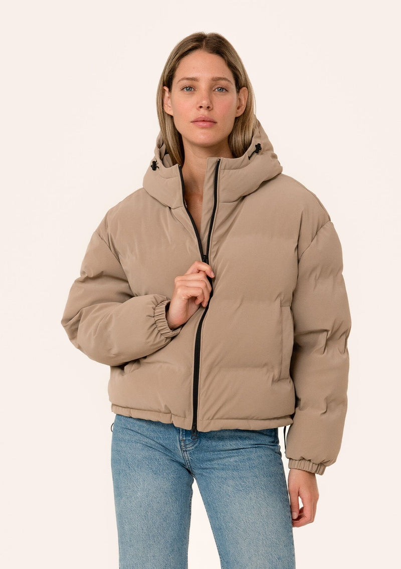 ![[Color: Taupe] A front facing image of a blonde model wearing an ultra puffy cropped jacket in a matte taupe brown finish. Featuring an adjustable hoodie with toggles, a zippered front, and side pockets.](http://www.shoplovestitch.com/cdn/shop/files/Batch2_0033_Rosemary-087_160x.jpg?v=1748480583)