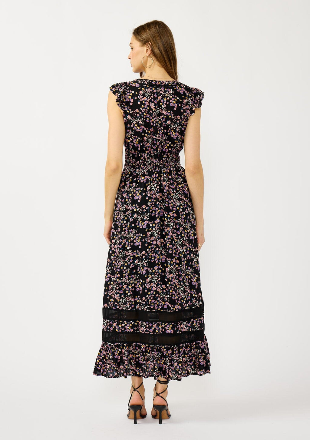 A touch of dark romance and vintage charm come together in this effortlessly elegant silhouette. Featuring soft cap sleeves, intricate lace inserts, and a delicate chiffon tiered hem, this piece adds depth and femininity to your fall wardrobe. Whether you're heading to a wedding or an evening out, its the perfect dress to elevate your special occasion wardrobe.