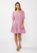 Short and sweet. Our must-have spring mini dress is crafted from ultra-soft cotton gauze. Featuring a plunging v-neckline, an open back detail with tie closure, and flirty puff sleeves. Pair it with white tennis shoes for a casual vibe, or add a simple heel for special occasions.