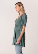 ![[Color: Lagoon] A close up front facing image of a blonde model wearing a bohemian spring tunic top in a teal crinkled fabric. With short puff sleeves, ruffle trim, a v neckline, a smocked bodice, an empire waist, and a flowy tiered body.](http://www.shoplovestitch.com/cdn/shop/products/Lovestitcheditsround3_0028_RosemaryEcom2-10-2357776copy_160x.jpg?v=1748480838)