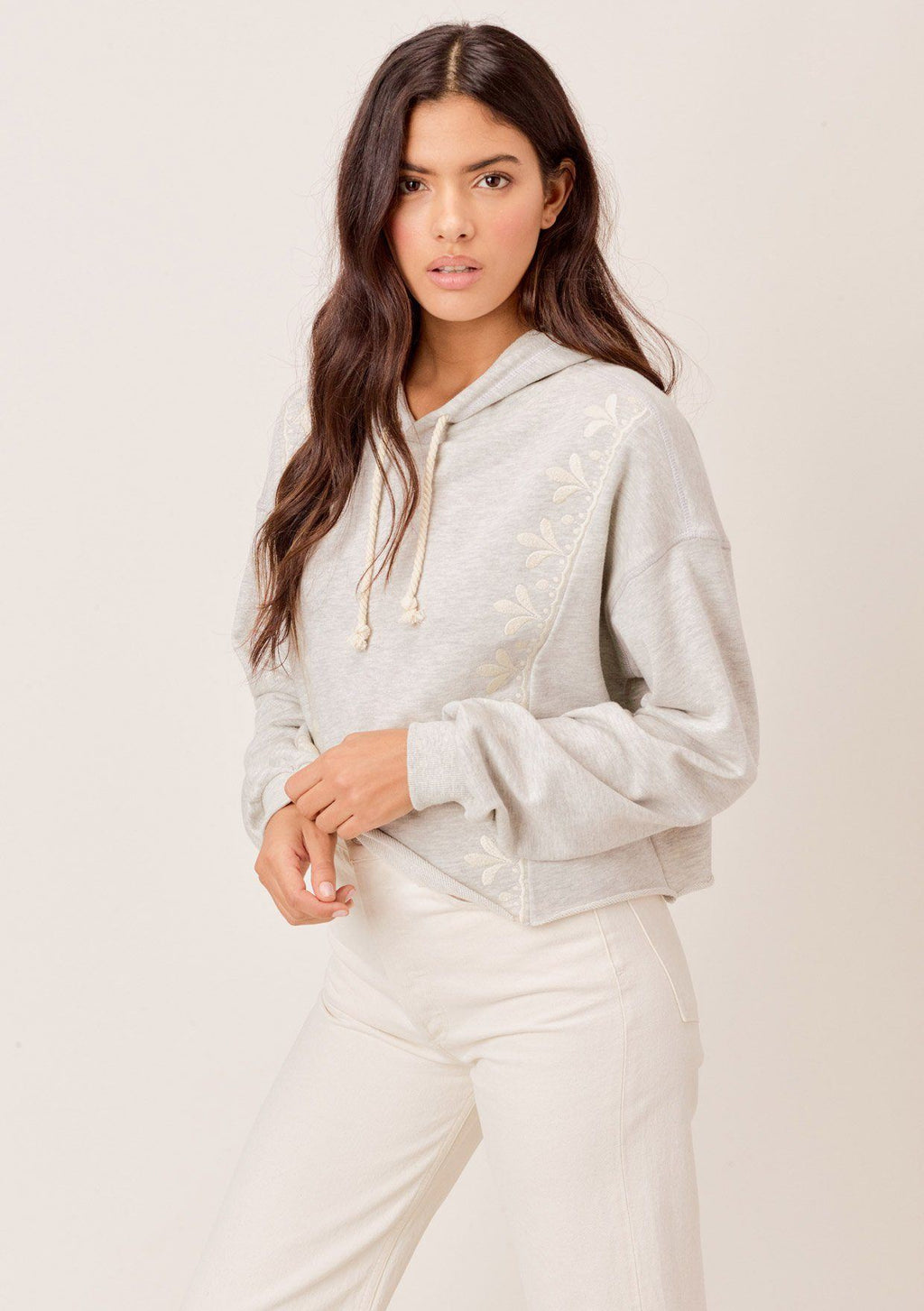 Who said loungewear can't be stylish? Made from super soft french terry, our cropped hooded sweatshirt features a raw edge hem and rope drawstring. The pretty floral embroidery detail elevates this not-so-basic hoodie.