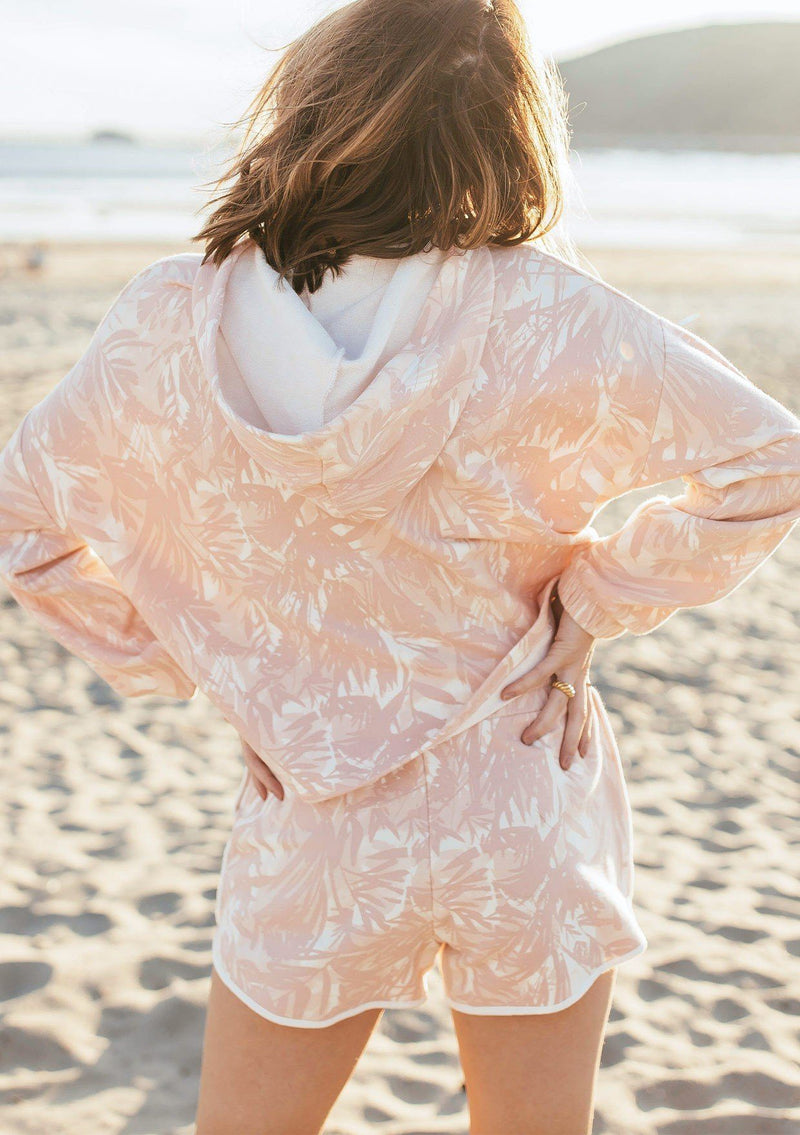A cool and casual style that is perfect for the beach, running errands, or lounging at home! Our tropical palm print jogging short features essential side pockets, an elastic waist with adjustable drawstring, and an easy pull-on style. Make it a matching set with the Lazy Days Palm Hoodie.