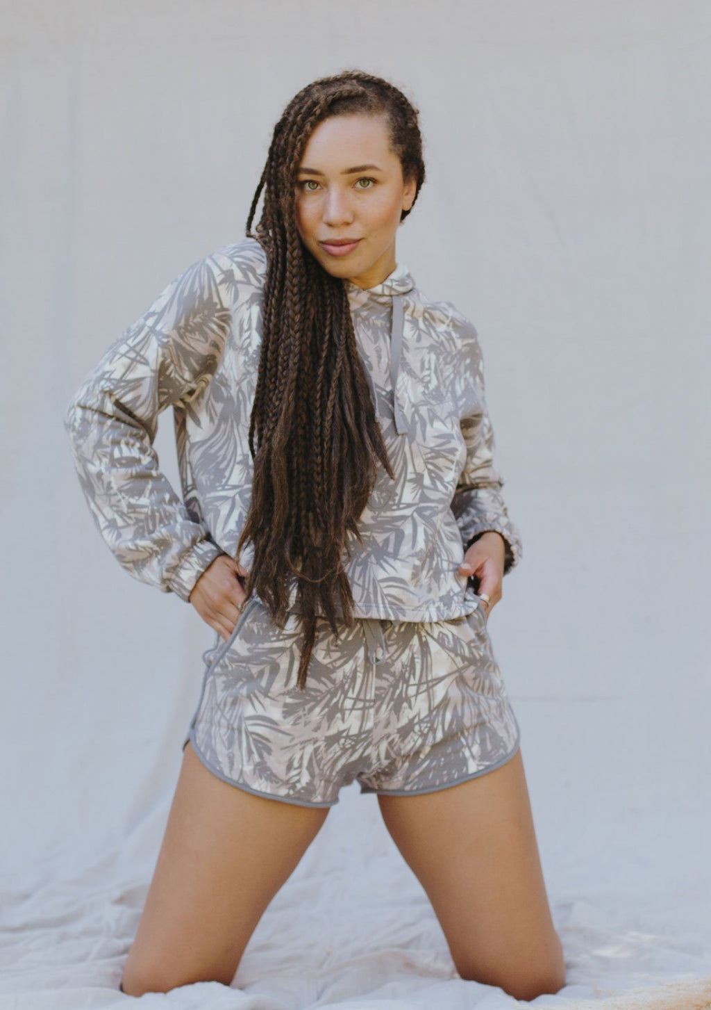 ![[Color: Grey/Natural] A woman standing outside against a white backdrop wearing a palm print jogging short. Featuring a drawstring waist, contrast trim, and essential side pockets.](http://www.shoplovestitch.com/cdn/shop/products/I-30111K-RFZ-1-7_160x.jpg?v=1619486270)