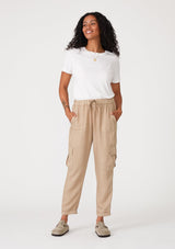 Featuring all the details found in our favorite classic cargo pants but with the comfort and ease of lightweight tencel. Our relaxed cargo pants feature a cropped tapered leg and side cargo pockets. The easy pull-on style makes getting dressed a breeze.