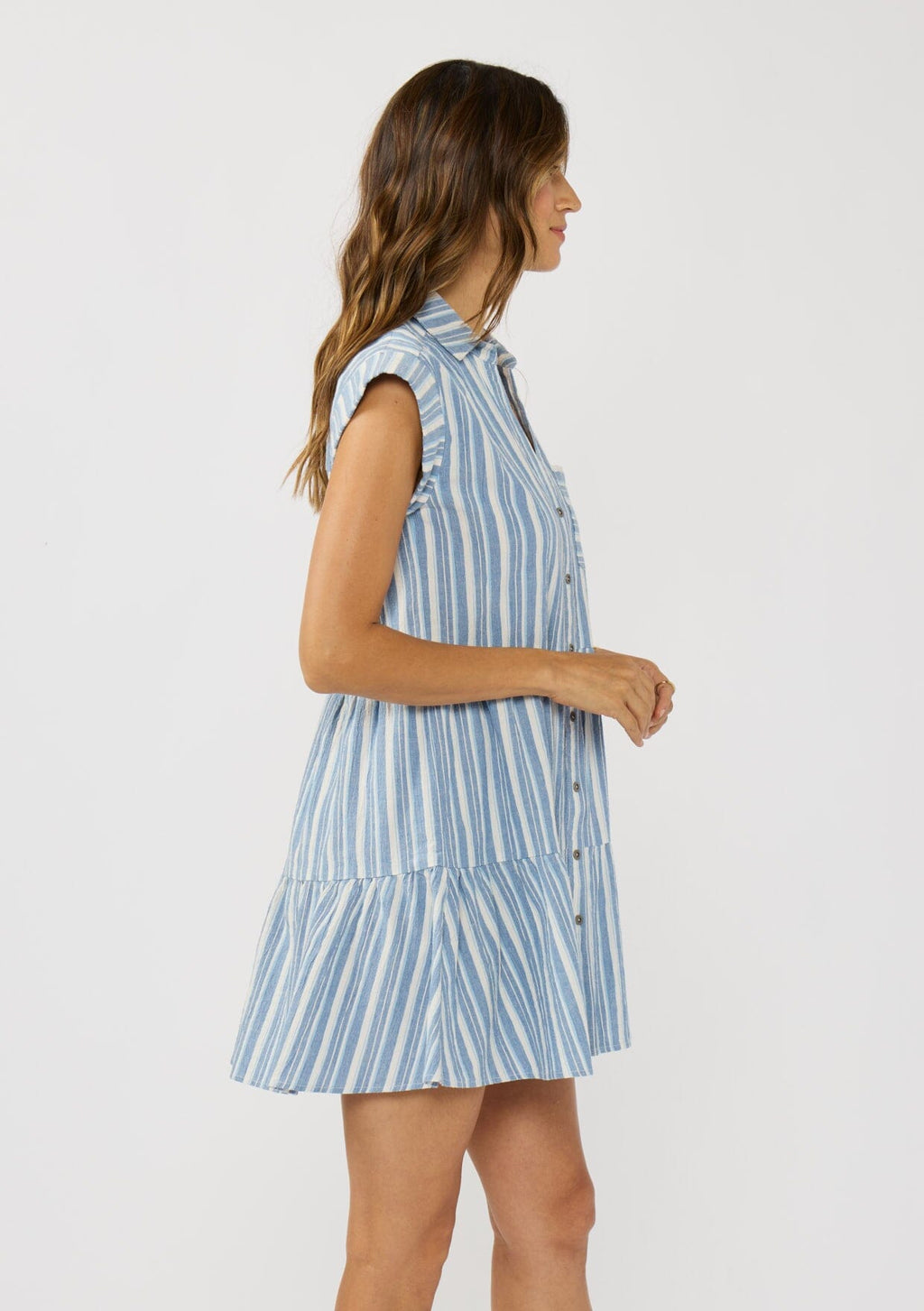 Our go-to breezy mini dress in blue and white stripes.
