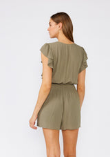 ![[Color: Olive] A side facing image of a brunette model wearing an olive green bohemian short romper. With short flutter sleeves, a v neckline, a crochet top, a self covered button front top, and a smocked elastic waist.](http://www.shoplovestitch.com/cdn/shop/files/greenromperwithdetailsandhairaccessories_0001_LOVESTITCH_022120241993_160x.jpg?v=1748479688)