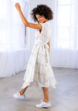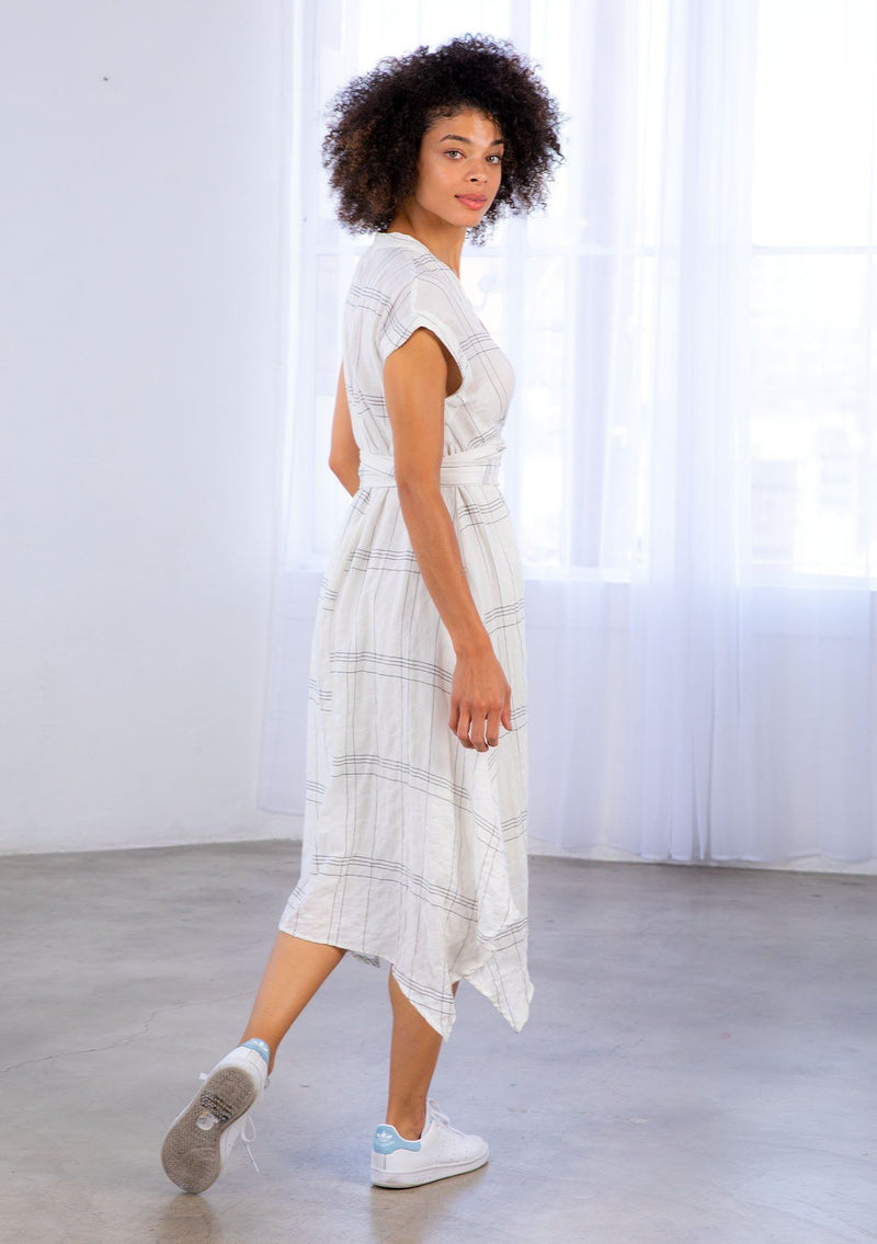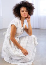 A fresh take on your classic Summer cotton dress! Our mid-length dress features a subtle plaid print throughout. With short cap sleeves and a waist-defining wrap tie detail. The lightweight cotton gauze fabric gives this effortlessly chic style an airy feel.