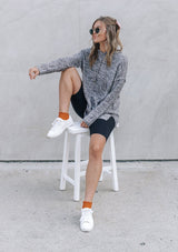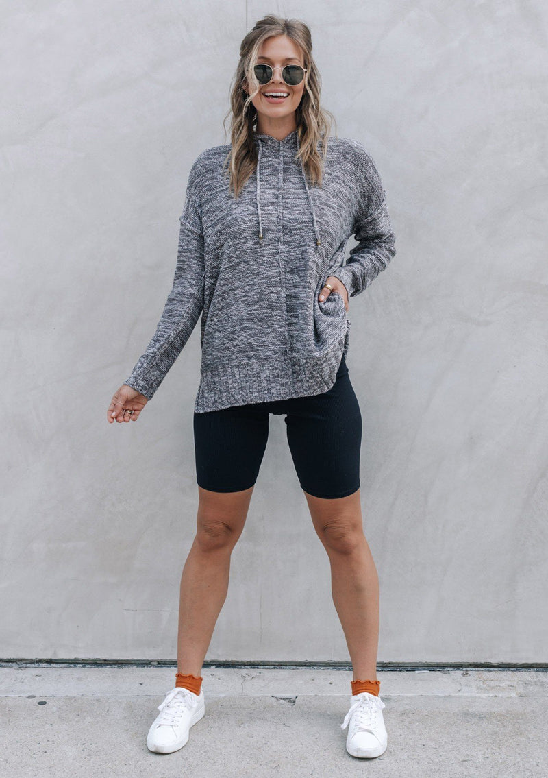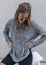 The quintessential California style pullover is here! This soft sweater in beautiful neutral tones features a drawstring hoodie, breezy side vents, and exposed seams throughout. Perfect for year-round layering!