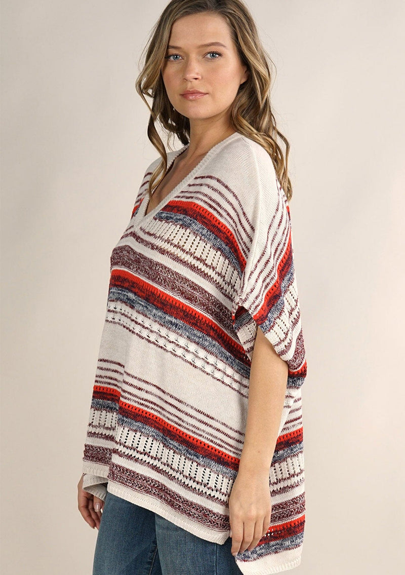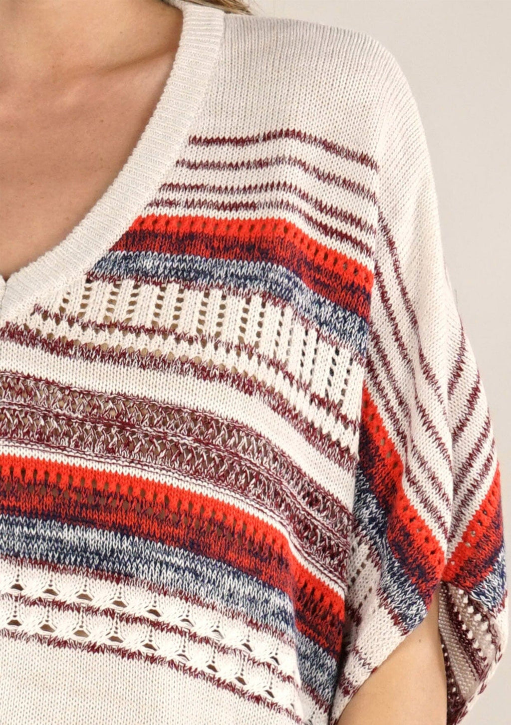 ![[Color: Cream/Red] A lightweight bohemian sweater poncho pullover top in a mixed stripe. With short sleeves, a v neckline, and a relaxed fit.](http://www.shoplovestitch.com/cdn/shop/files/cream-red_160x.jpg?v=1752256322)