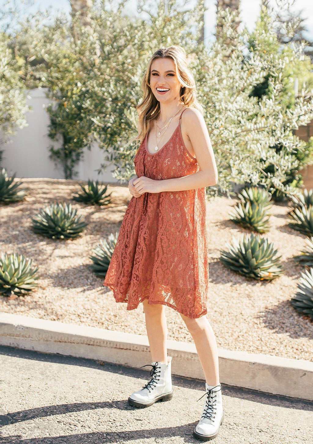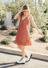 Nothing says romance quite like lace! Our sleeveless lace mini dress features a flattering v-neckline in the front and back, a swingy trapeze silhouette, and delicate shirring details at the neckline. An ultra-feminine style that is perfect for date nights or parties.