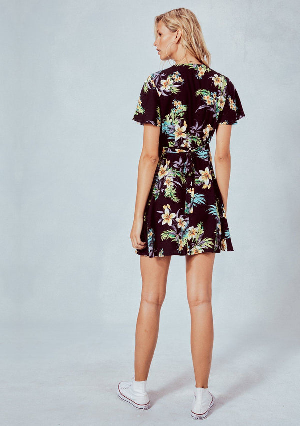 [Color: Black/Apricot/Blue] Perfect winter and summer, day to night floral maxi dress featuring a sexy open back, long split sleeves and a plunging V-neckline. Show a little leg in the flattering floral Glenna Mini Dress in Black.[Color: Black/Apricot/Blue] Lovestitch Floral printed, split sleeve mini dress with smocked waist and sleeve cuffs.