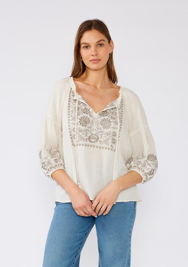 [Color: White] A side facing image of a brunette model wearing a white bohemian summer mini dress in embroidered eyelet. With short flutter sleeves, a smocked elastic waist, a v neckline, a tie waist accent, a tiered high low mini skirt, and lattice trim. [Color: White] A full body front facing image of a brunette model wearing a white bohemian summer mini dress in embroidered eyelet. With short flutter sleeves, a smocked elastic waist, a v neckline, a tie waist accent, a tiered high low mini skirt, and lattice trim.