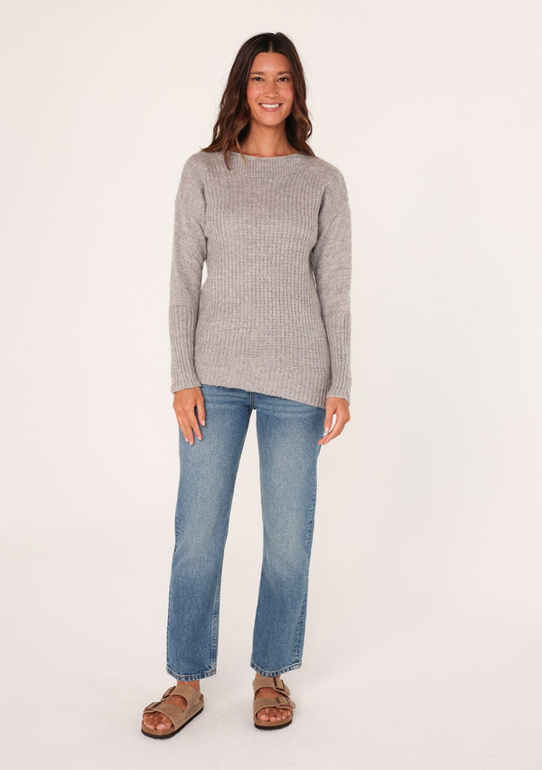 ![[Color: Cement] Essential honeycomb knit sweater. A versatile layering style featuring a rolled neckline and hemline with side vents.](http://www.shoplovestitch.com/cdn/shop/products/10851280_9d849fb5-ef0e-4f7e-a943-ee3a461c00d3_{width}x.jpg?v=1698339806)