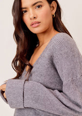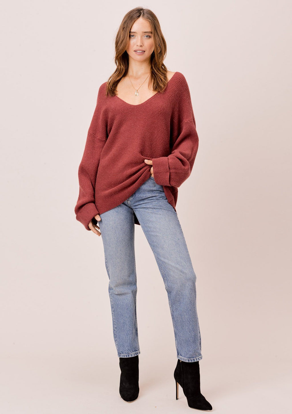 Our ultra soft and cozy dropped shoulder V-neck sweater was designed for lounging in style! Featuring long oversize sleeves, a flattering v-neckline, and cuffed sleeves. Elegantly slouchy, this easy pullover is both comfortable and flattering. Grab your coffee mug and cozy up in our most comfortable slouchy sweater!