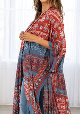We've got the best kimono styles for lazy beach days and nights. This stunning, ultra-lightweight mid-length kimono features flattering 1/2 length sleeves, a sexy side slit, and a multi-color bohemian design throughout. Throw it on over your swimsuit or style it over a tank top and jeans.