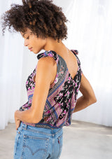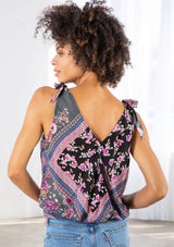 We love a tie-shoulder tank top for its timeless bohemian feel, and we've updated this favorite style in our ultra-trendy floral patchwork print. Featuring a surplice v-neckline in the front and back and a smocked elastic hemline. Pair this flattering style with denim for a classic boho vibe.