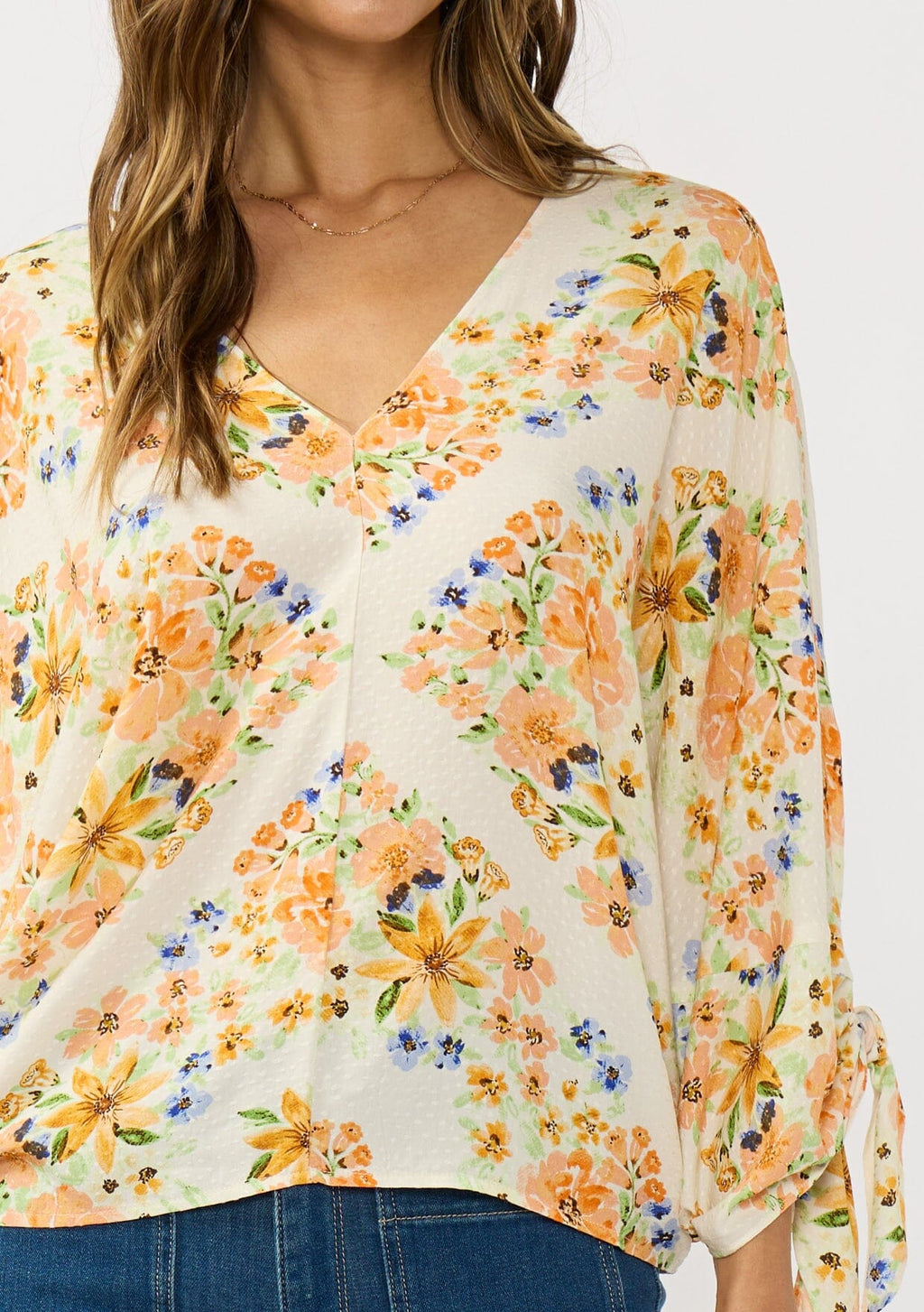 We adore this softly statement-making style for its bold floral print and effortlessly oversized silhouette. Designed with a v-neckline, voluminous long sleeves, and finished with delicate tie details. It's the perfect top to pair it with your favorite denim for an easy, elevated spring look.