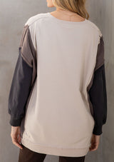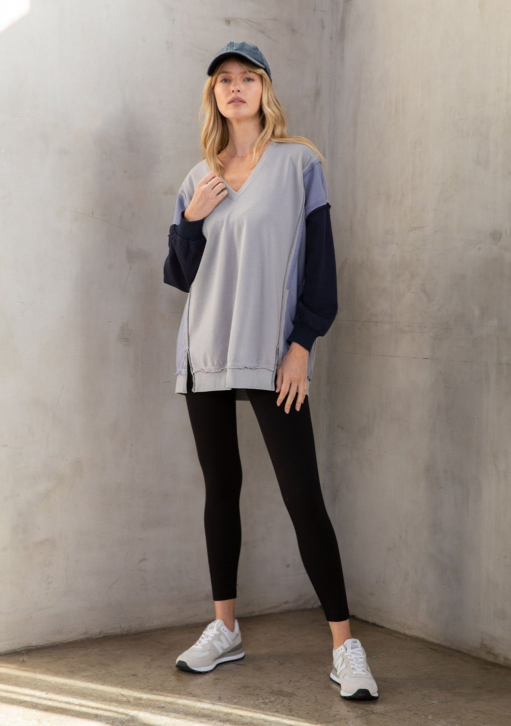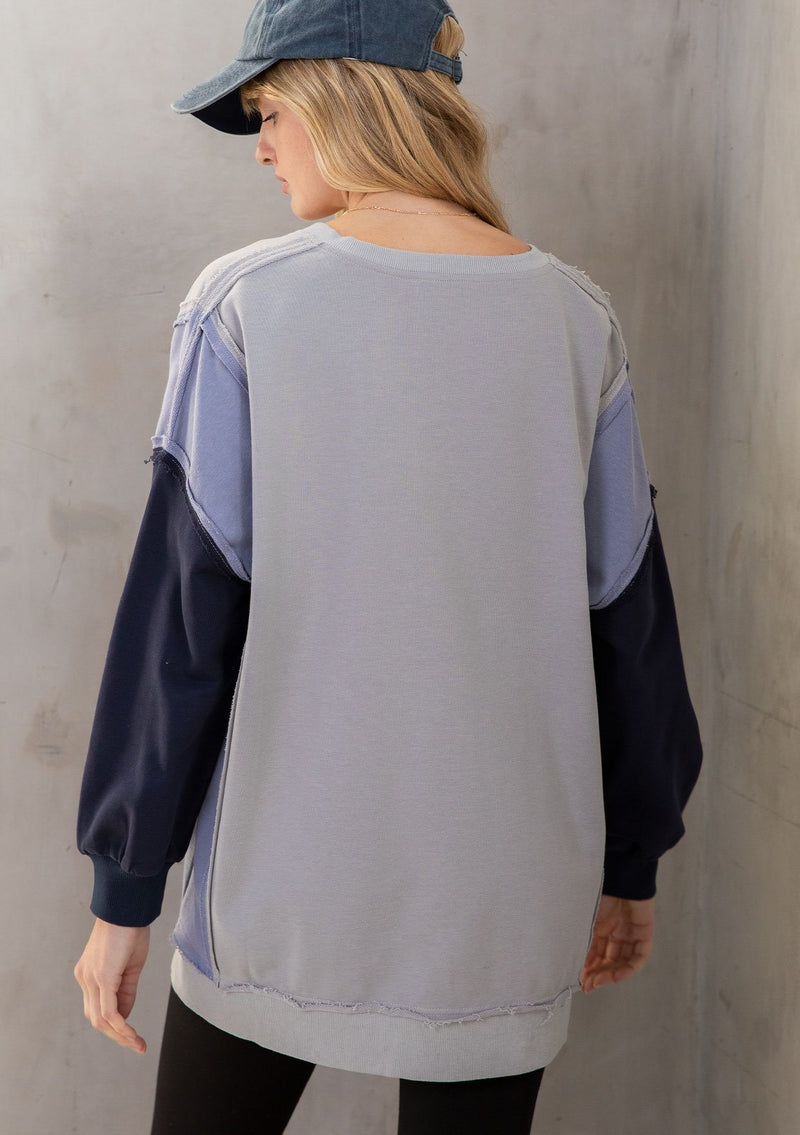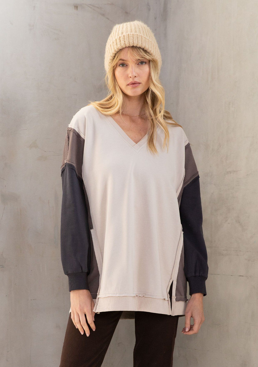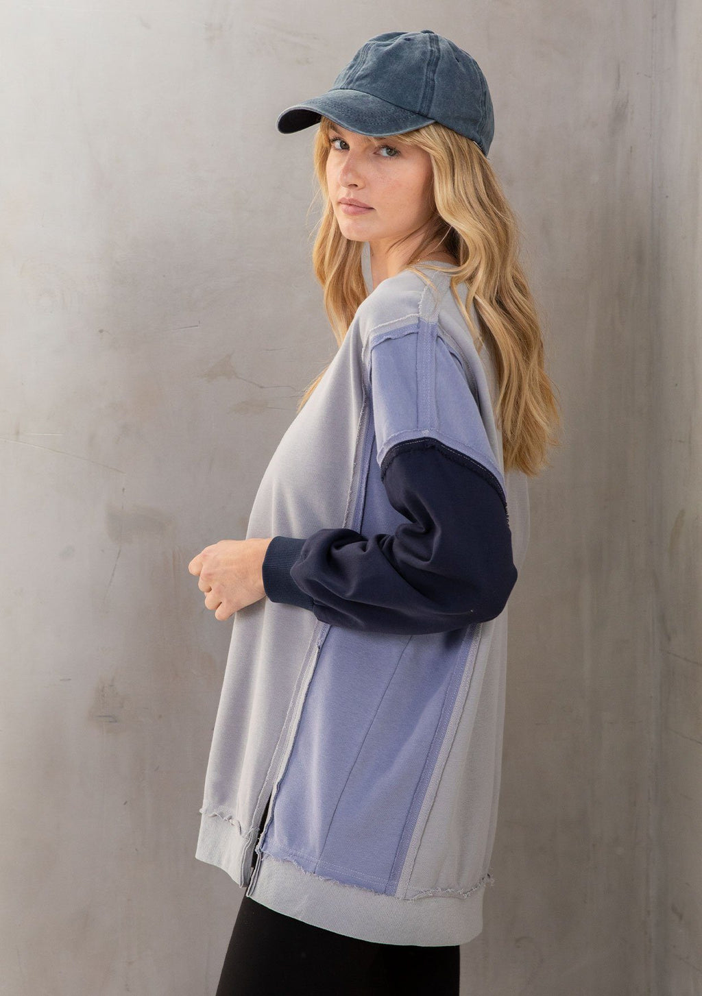 Shop NowA cool twist on the classic sweatshirt, our french terry pullover is designed in stitched color block panels. With a unique raw edge hemline and exposed stitch details. Whether lounging around the house or styled with denim, this cozy sweatshirt adds an effortless touch.
