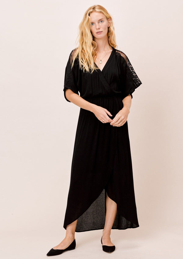 [Color: Black/Lavender] Lovestitch floral printed, short sleeve midi dress with pleated side detail.[Color: Black/Lavender] Lovestitch floral printed, short sleeve midi dress with pleated side detail.