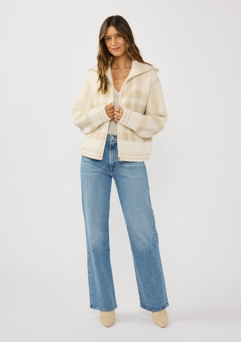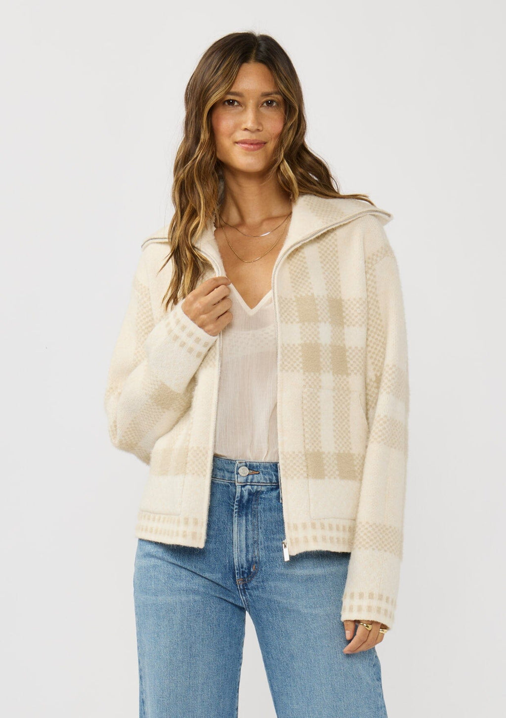 ![[Color: Ivory/Taupe] A front facing image of a brunette model wearing an ivory plaid jacket with a zip up front and side pockets.](http://www.shoplovestitch.com/cdn/shop/files/I-20308K-THI-IVORY-LIGHTTAUPE-FRONT1_160x.jpg?v=1767645638)