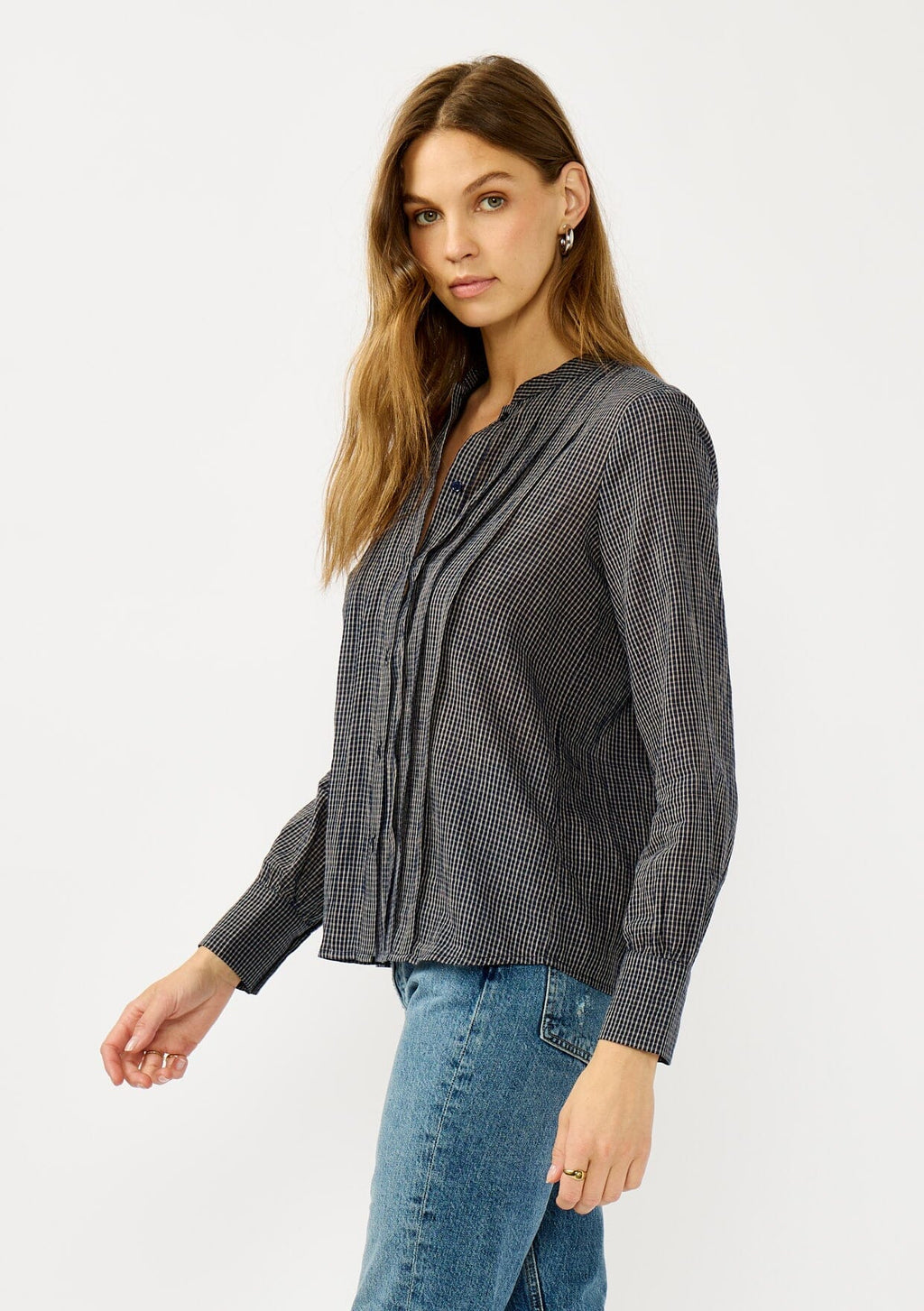 A timeless checkered blouse with thoughtful details for effortless fall style. Featuring delicate pintucks and a classic button front, it brings subtle texture and visual interest to your wardrobe. Perfect for both work and weekend wear, it offers a playful, relaxed fit for all-day wear.