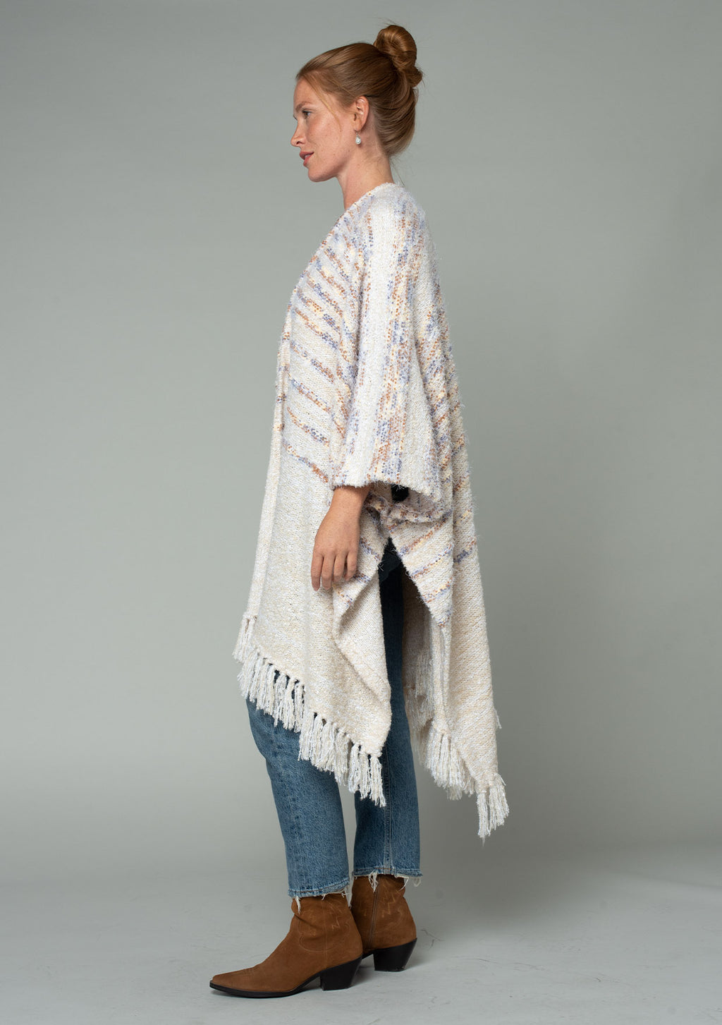 ![[Color: Oatmeal Multi] A side facing image of a brunette model wearing a fuzzy bohemian sweater poncho in a cream multi color knit. With an open front and tassel fringe trim. The perfect on the go style when an extra cozy layer is needed. Styled with a casual black maxi for the Fall season.](http://www.shoplovestitch.com/cdn/shop/files/I-51020K-RZB_OATMEALMULTI-S_160x.jpg?v=1748481585)