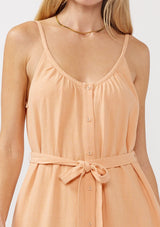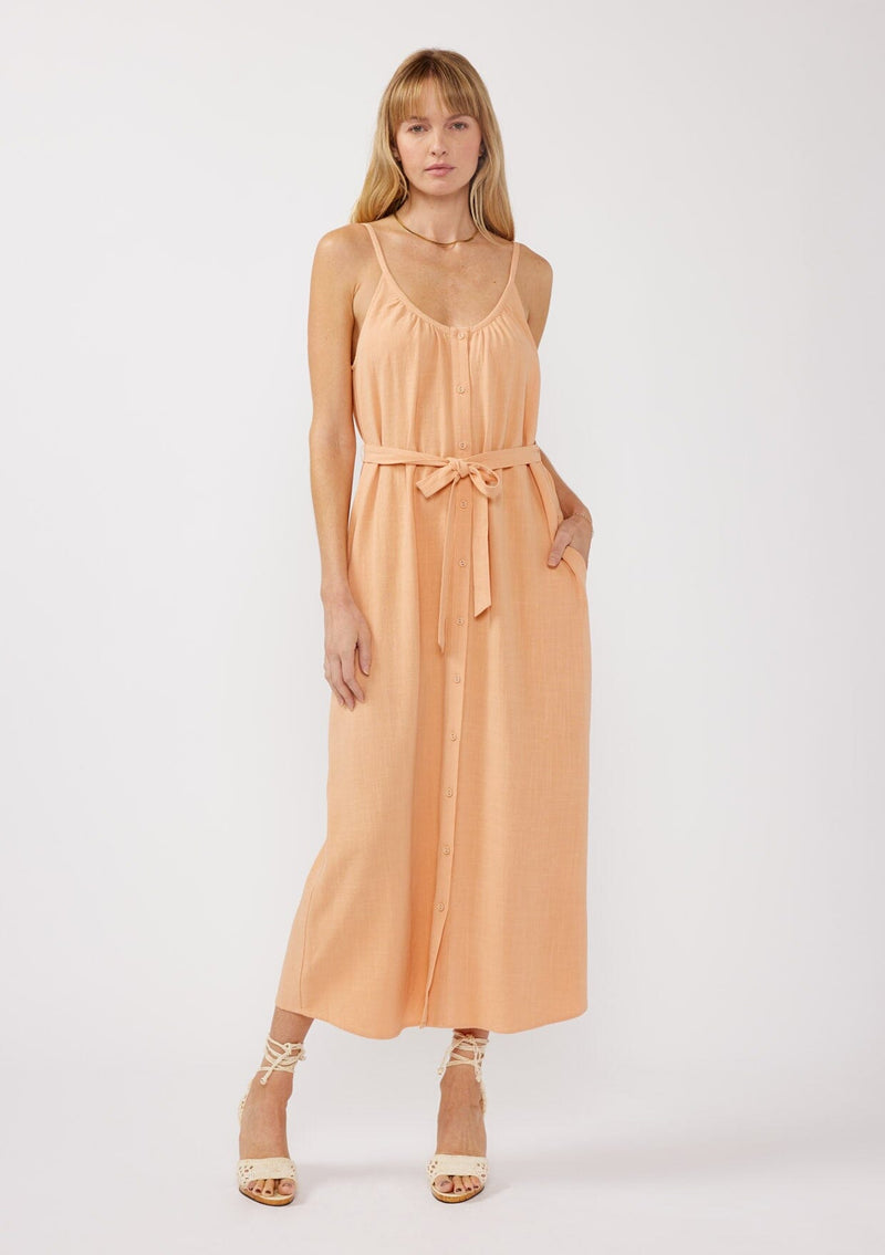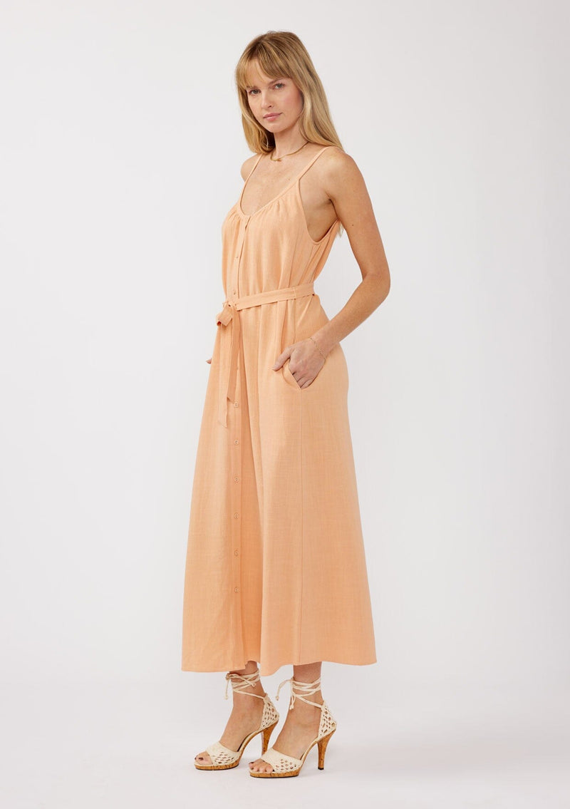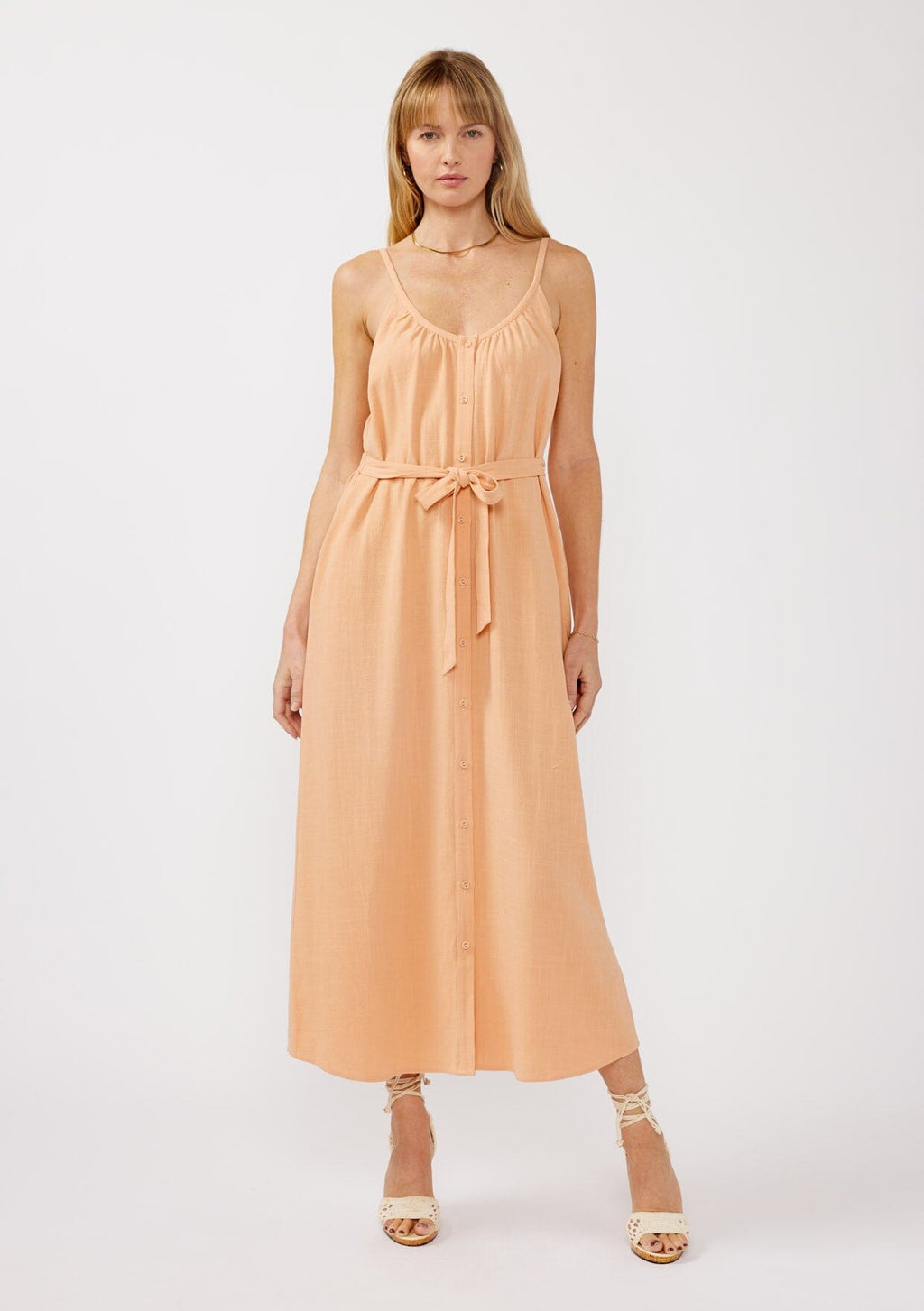 ![[Color: Apricot] A front facing image of a blonde model wearing an light orange sleeveless maxi dress with an adjustable waist belt, button front, a scoop neckline, and side pockets. A relaxed fit maxi dress with a linen blend texture.](http://www.shoplovestitch.com/cdn/shop/files/130_160x.jpg?v=1748478159)