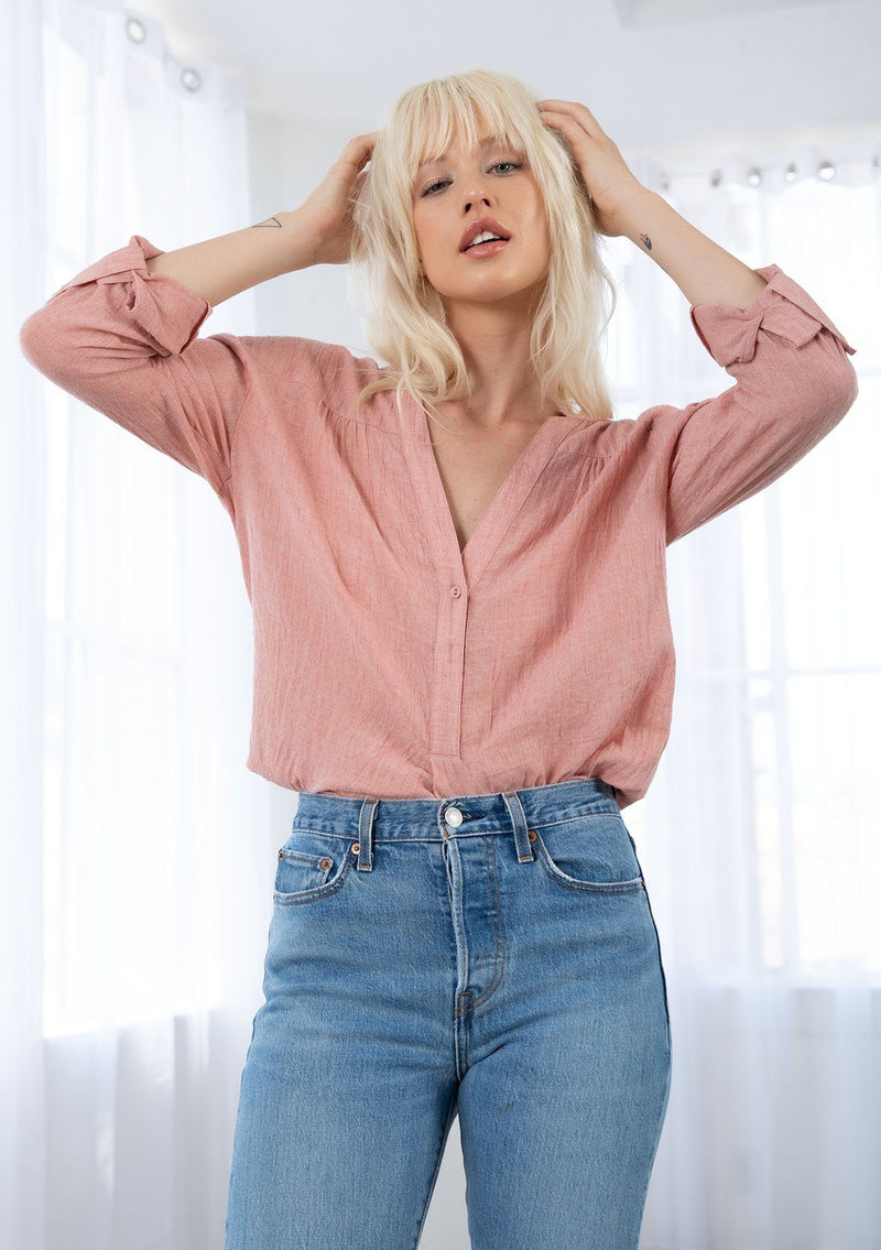 ![[Color: Redwood] A model wearing a sheer popover top with a single button front, long rolled sleeves with a button tab closure, and a delicate gathered yoke detail.](http://www.shoplovestitch.com/cdn/shop/products/I-13637W-RLZ_REDWOOD-C-1_160x.jpg?v=1748475111)