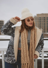 Our stunning floral print statement jacket instantly adds a bohemian touch to any outfit. Featuring a warm faux shearling lining, a cozy hood, and essential side patch pockets. A comfortable and stylish addition to your cold-weather wardrobe. Ideal for layering over long sleeves and pairing with your favorite vintage denim, this jacket is a must-have for a chic cold-weather look.