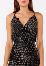 Perfectly sweet and timeless, this classic sleeveless mini dress is designed in a mixed floral print. Featuring a flowy tiered skirt, a surplice v-neckline, and a defined silhouette with smocked elastic waist detailing. Whether you're heading out for a casual date night or enjoying a leisurely day, pair it effortlessly with a chunky sandal for an added touch of style. Embrace the essence of a free-spirited lifestyle with our Celestial Garden Mini Dress.