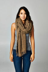Shop NowWrap yourself in cozy comfort with this oversized two-tone knit scarf! The rich woven texture and crosshatch weave add definition, while the fringed trim gives it that classic scarf vibe. Perfect for making a statement this fall and winter, it’s the ultimate accessory to elevate any casual look.
