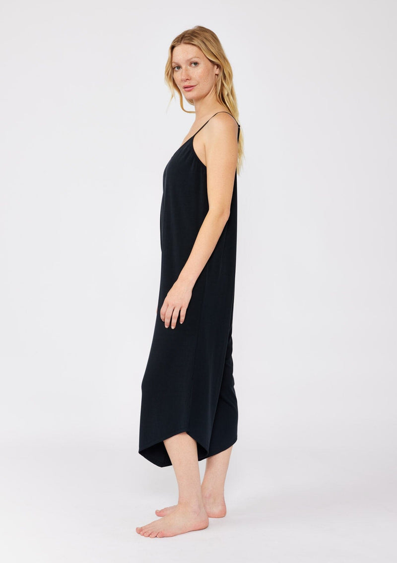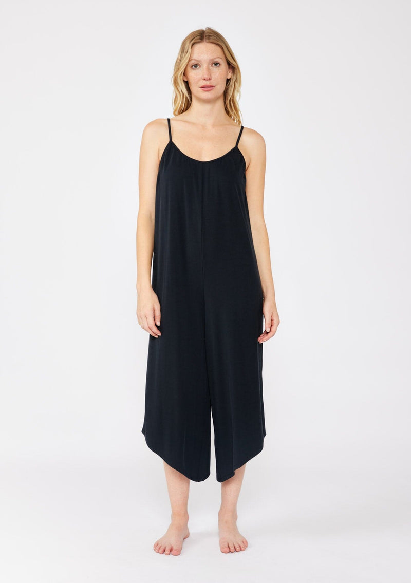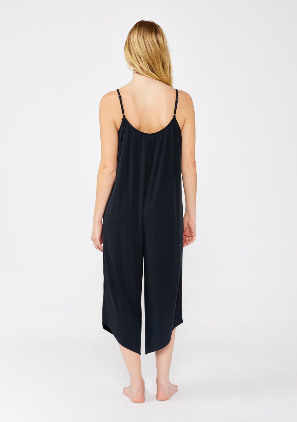 A year-round staple designed in an ultra-soft micro ribbed knit. This versatile jumpsuit features adjustable spaghetti straps, a flattering scoop neckline, and a cropped wide leg. Ideal for casual outings or lounging at home. Pair with your favorite sneakers for an edgy look or comfortable flats for a laid-back style.