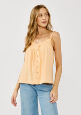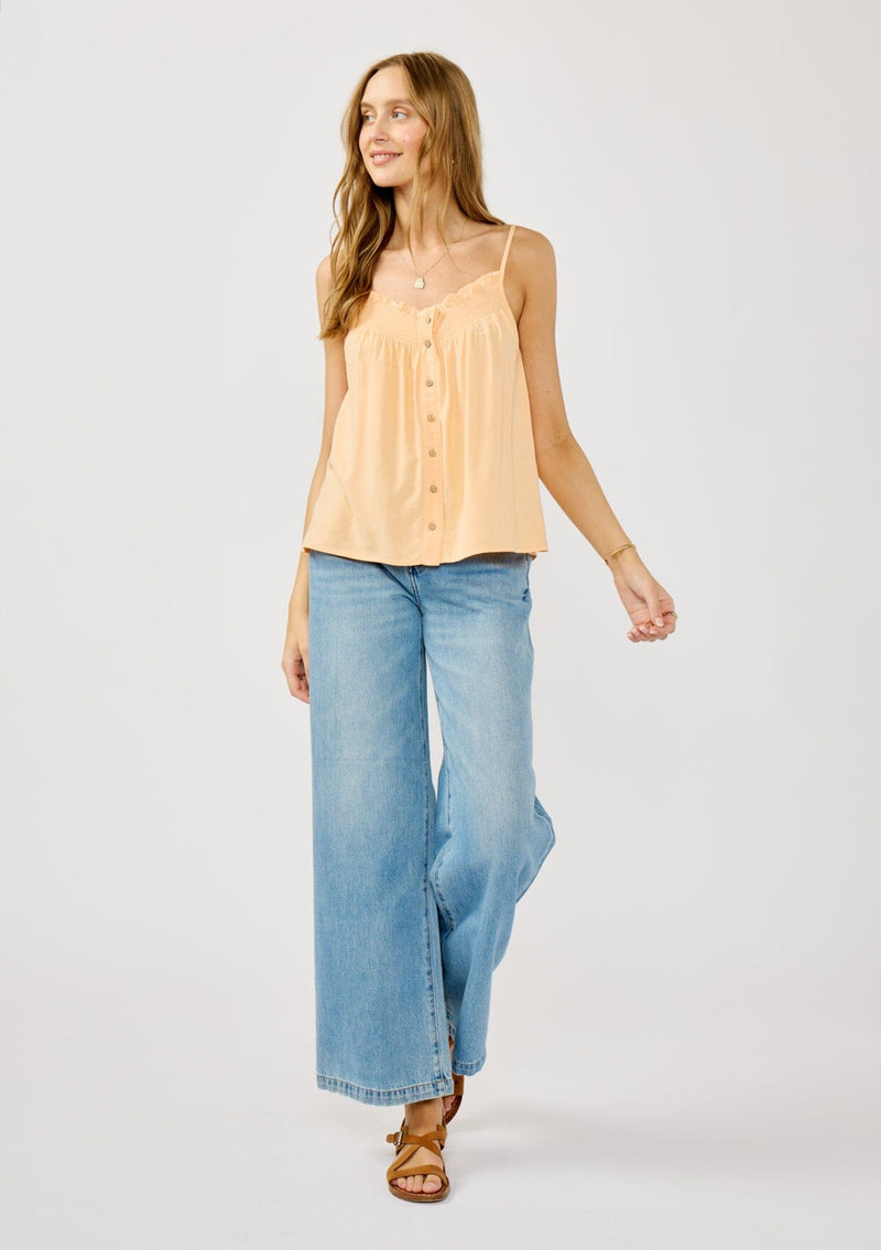 A super-flowy boho camisole that captures the essence of free-spirited style. This warm weather essential features chic smocked detailing and a button front, adding a playful twist to your average cami. Perfect for effortless, laid-back looks all summer long.
