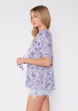 Embrace the spirit of summer with our bohemian-inspired top, featuring a beautiful botanical print in soothing shades of lilac and bone. This top is designed with a relaxed fit, ensuring comfort and style for warm weather. The V-neckline and short sleeves add a touch of elegance, while the lightweight rayon fabric keeps you cool. Perfect for any summer occasion, this top pairs effortlessly with shorts or skirts for a chic, bohemian look.