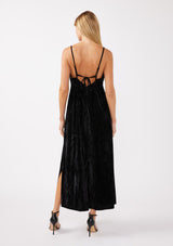 Velvet is back, and it’s here to steal the spotlight! Meet your new favorite black velvet maxi dress with an effortless relaxed fit, embroidered v-neckline, and an adjustable strappy back for added definition. Let's not forget about the slit; it adds just the right amount of drama to turn heads at any holiday party, wedding or special night out.