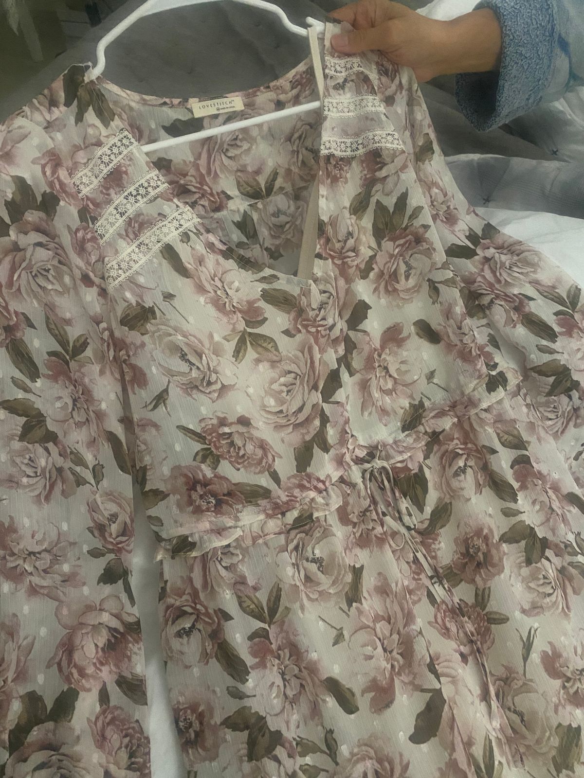 Shop The SaleOur sheer maxi dress in a romantic floral print is sure to enchant. Featuring an adjustable drawcord waist, a tiered skirt for shape and movement, and delicate lace trim detail throughout. The metallic clip dot detail catches the light as you move, adding a subtle bit of sparkle.