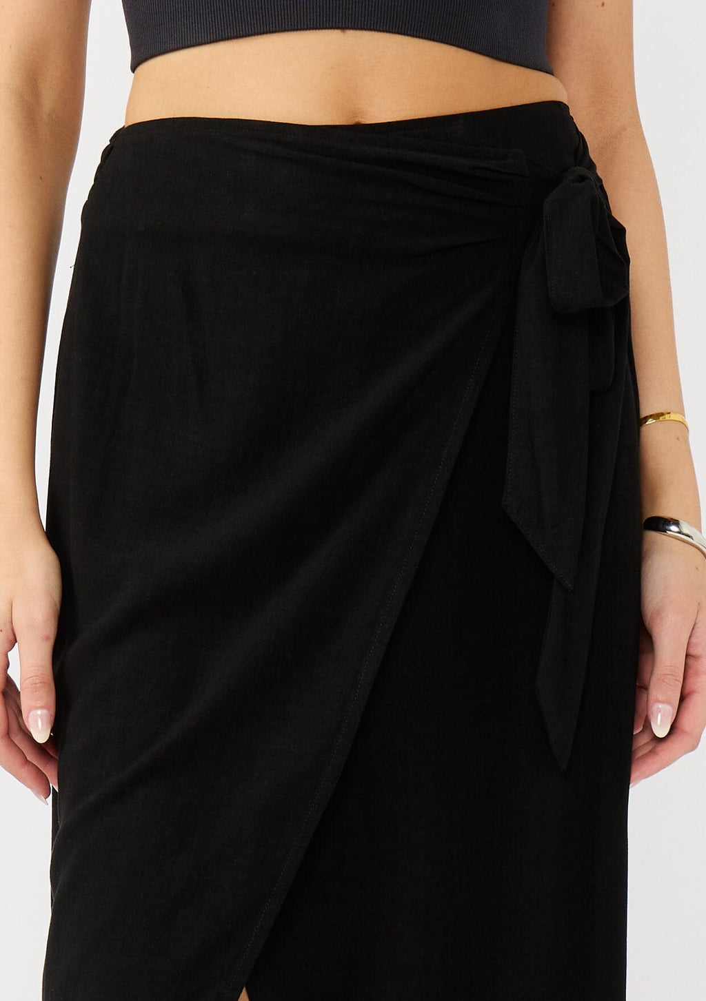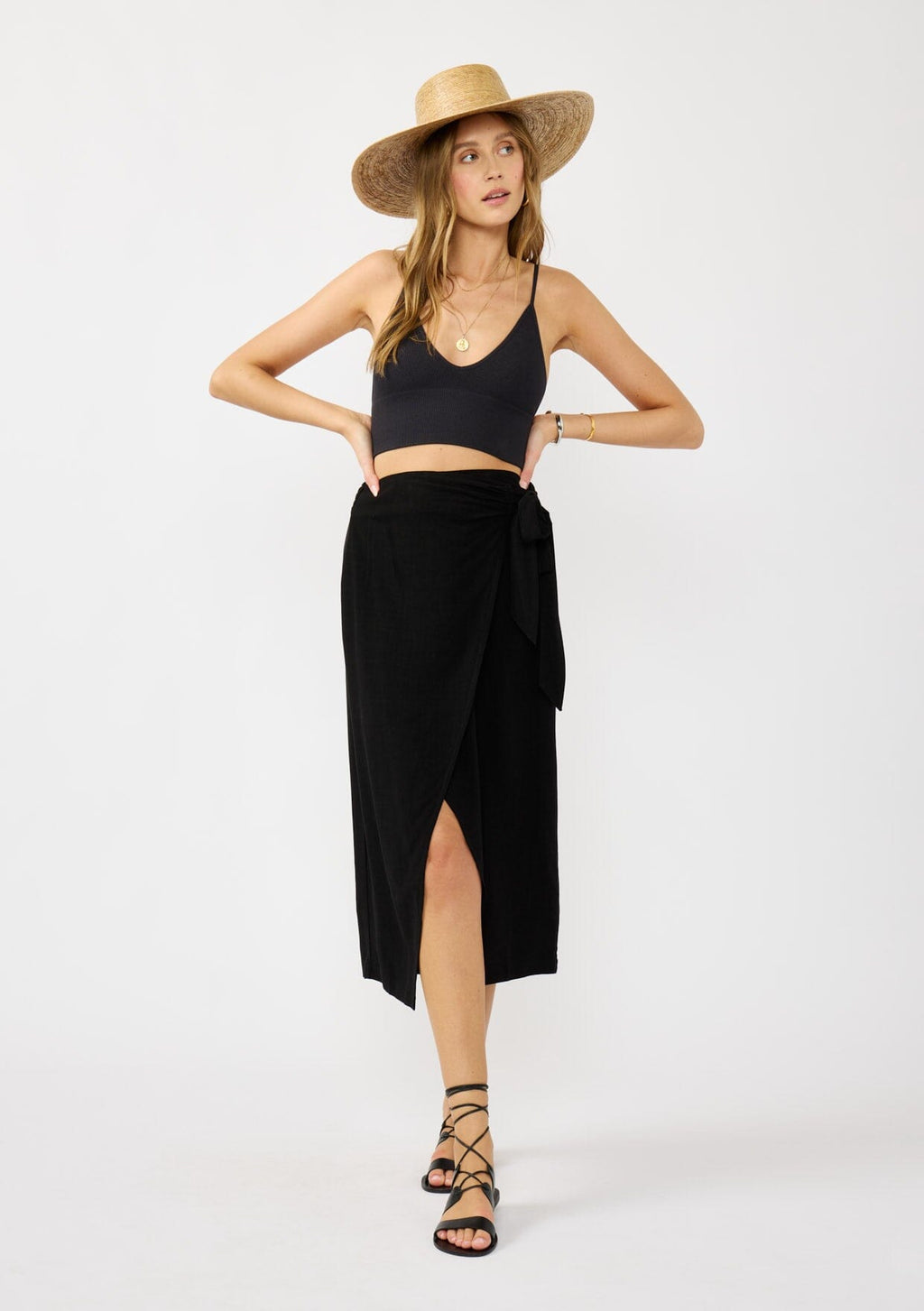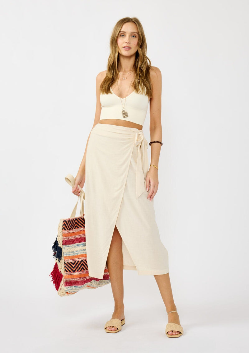 Give your denim a break and slip into this effortlessly chic wrap skirt. Designed with a sleek mid-length silhouette and a flattering side tie closure, it's the perfect blend of comfort and style. Pair it with a bikini top and sandals and don't forget to add our Amalfi Coast Fringed Tote for the perfect laid-back, beach look.