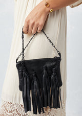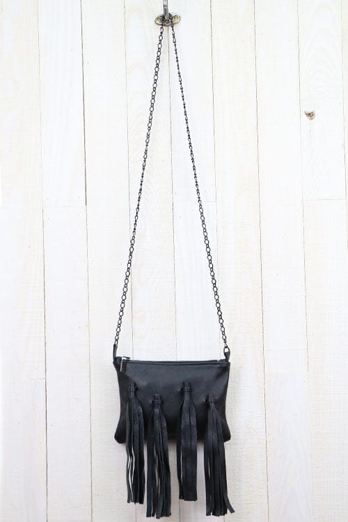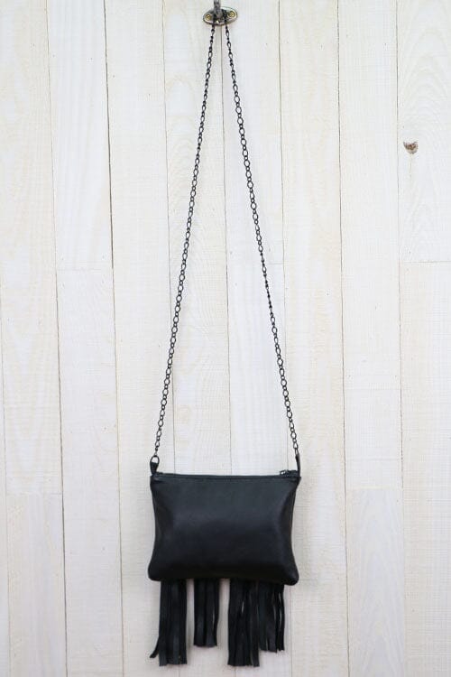 Luxuriously soft and chic, this petite leather crossbody purse features a secure zippered closure, decorative leather tassels, and a long, elegant chain strap. The perfect boho statement bag to elevate your festival wardrobe and beyond.