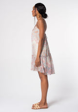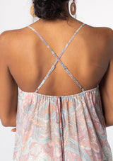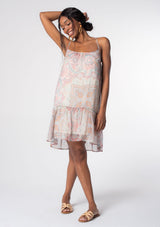 A dreamy chiffon mini dress that will keep up with all of your adventures this Spring and Summer. Designed in a bohemian pastel paisley print, featuring a flowy fit and an adjustable strappy cross back. This versatile style can be dressed up with a heel and a statement earring or dressed down with tennis shoes.
