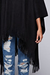 Snuggle up in this super soft poncho with an asymmetrical hem and playful fringe details! Style over denim or a dress for an ultra cozy elevated look. Whether you’re celebrating the holidays or just staying stylish through the colder seasons, this poncho has you covered.