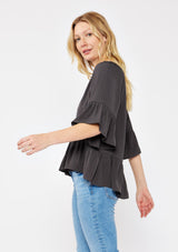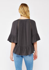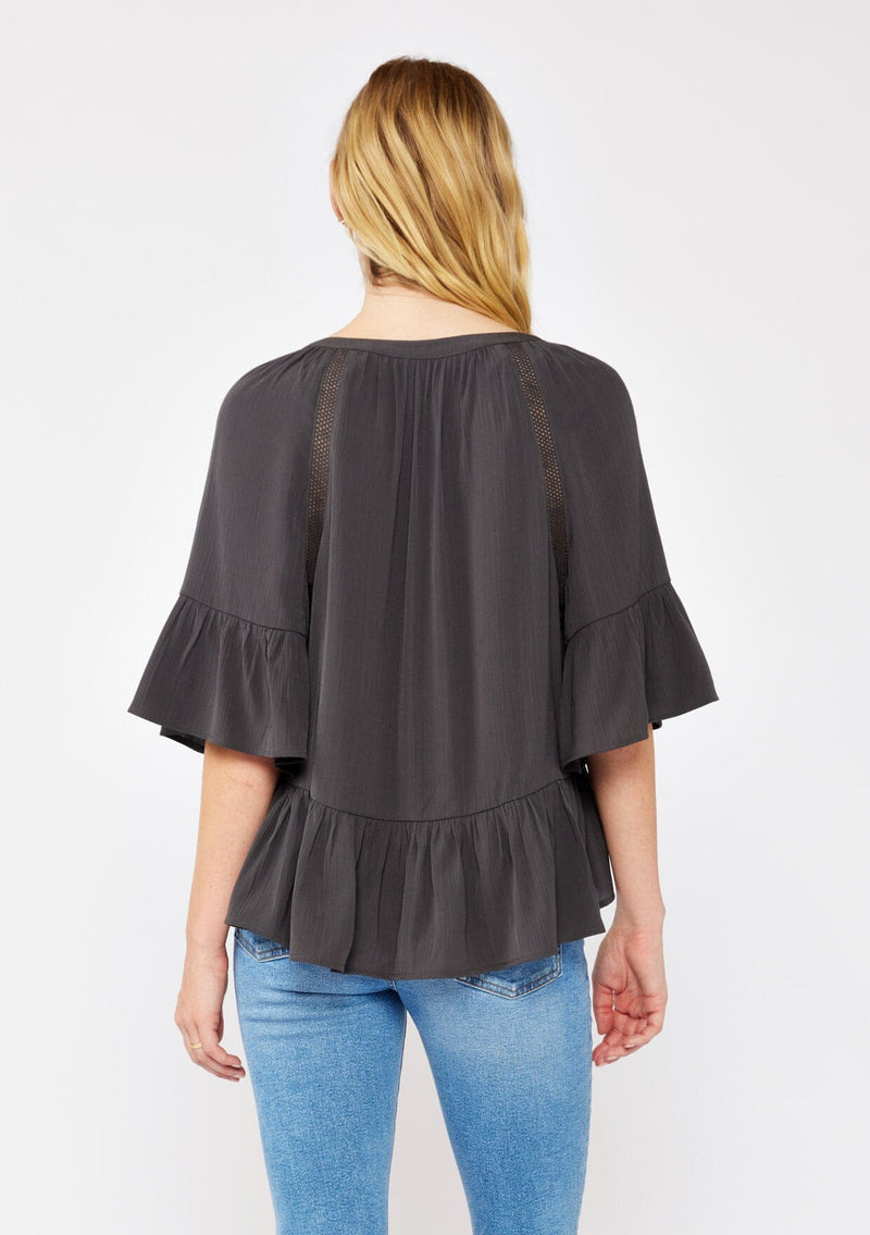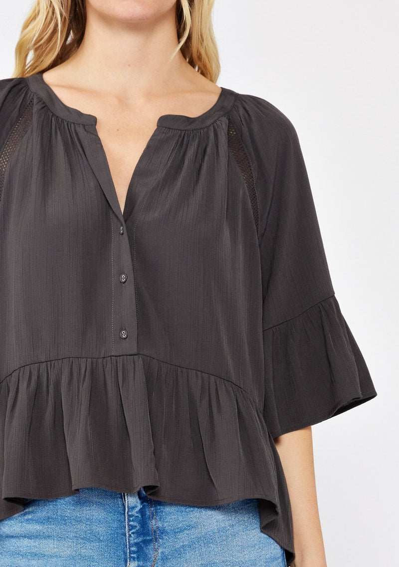 ![[Color: Charcoal] A blonde model wearing a grey relaxed fit peplum style blouse. A button front top with flutter half sleeves, split v neckline, and lace trim inserts. Styled with light denim jeans for an ultra boho look.](http://www.shoplovestitch.com/cdn/shop/files/I-15447W-SVL_CHARCOAL_160x.jpg?v=1748478966)