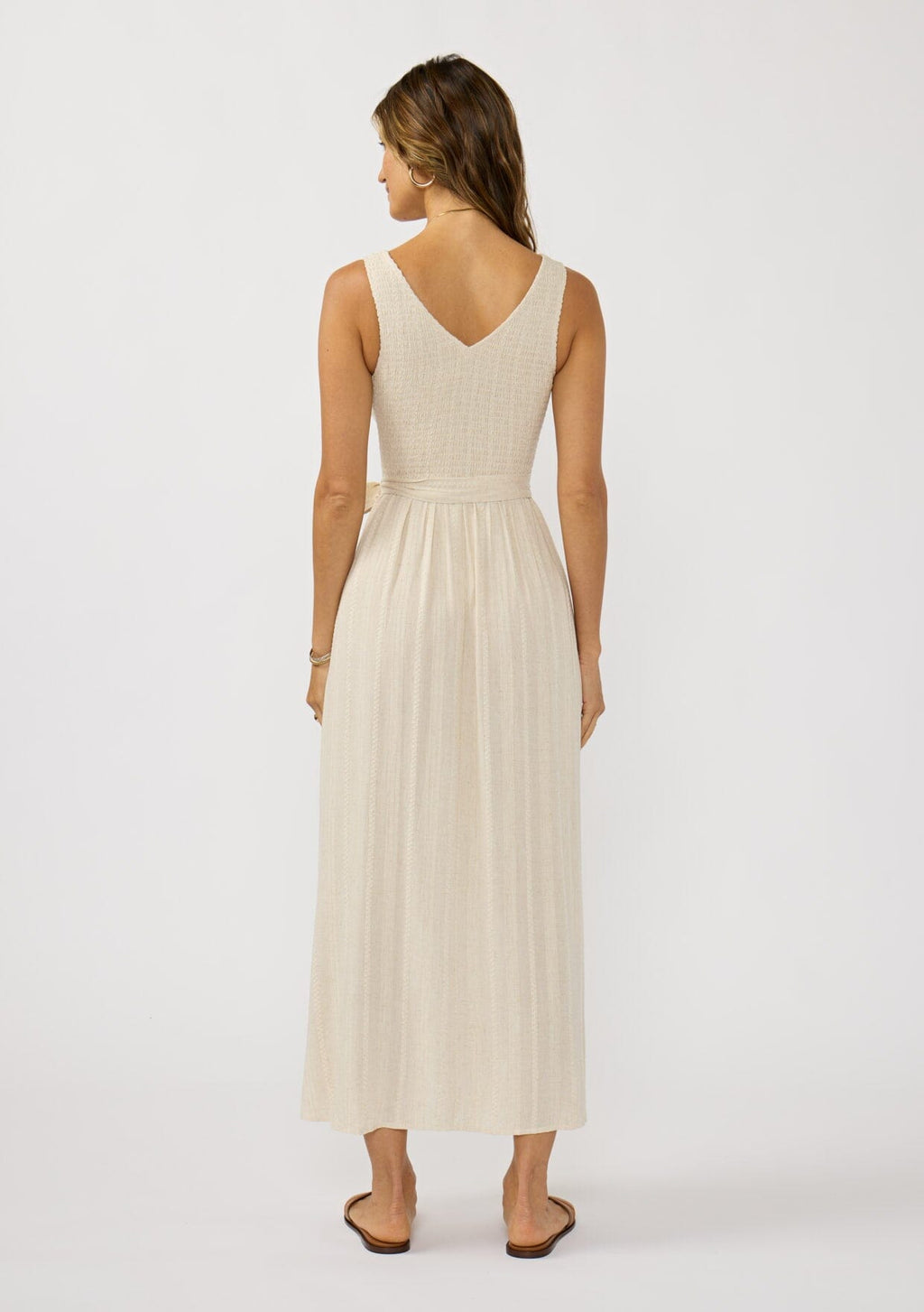 ![[Color: Natural] A back facing image of a brunette model wearing a beige jacquard midi dress with a smocked bodice, v-neckline, adjustable waist belt, and side pockets.](http://www.shoplovestitch.com/cdn/shop/files/LOVESTITCH_20251201_23_160x.jpg?v=1765521386)