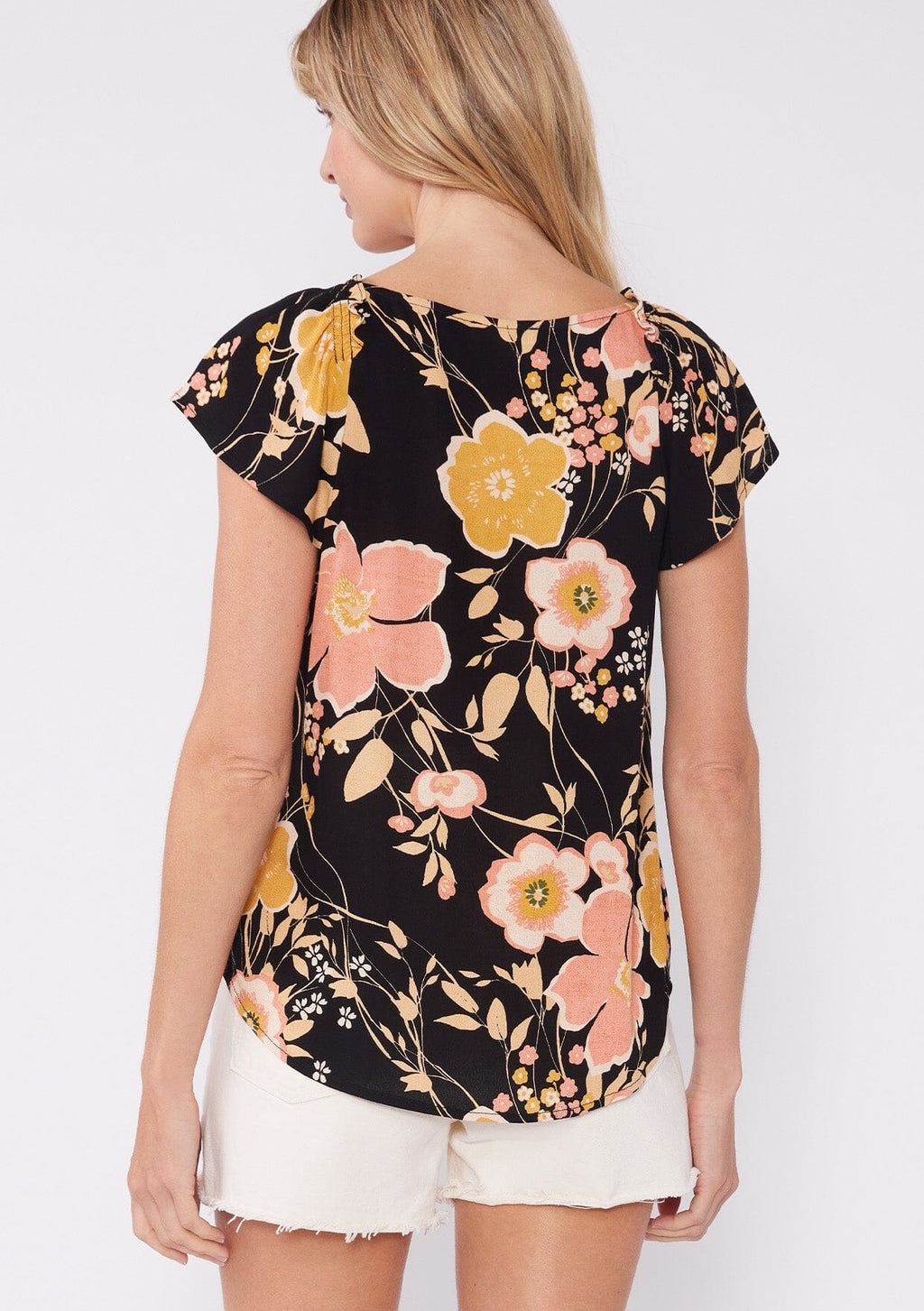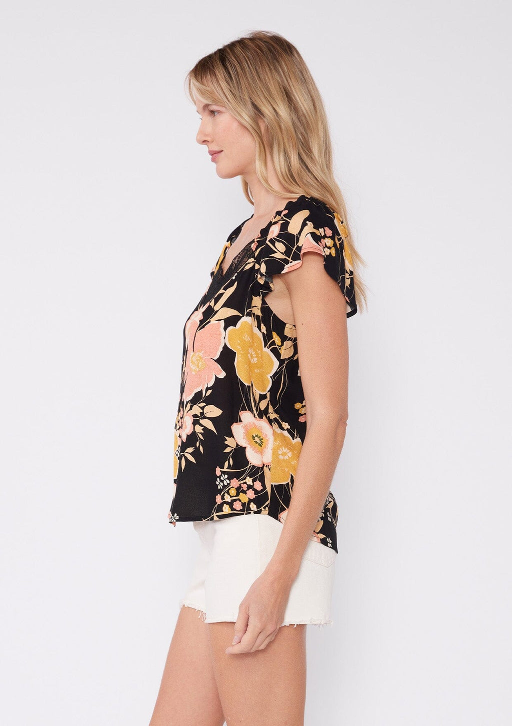 Shop The SaleIntroducing a Lovestitch classic black top, reimagined for a perfect blend of elegance and comfort featuring flattering cap sleeves, a sophisticated lace trim v-neckline and a beautiful floral print design.